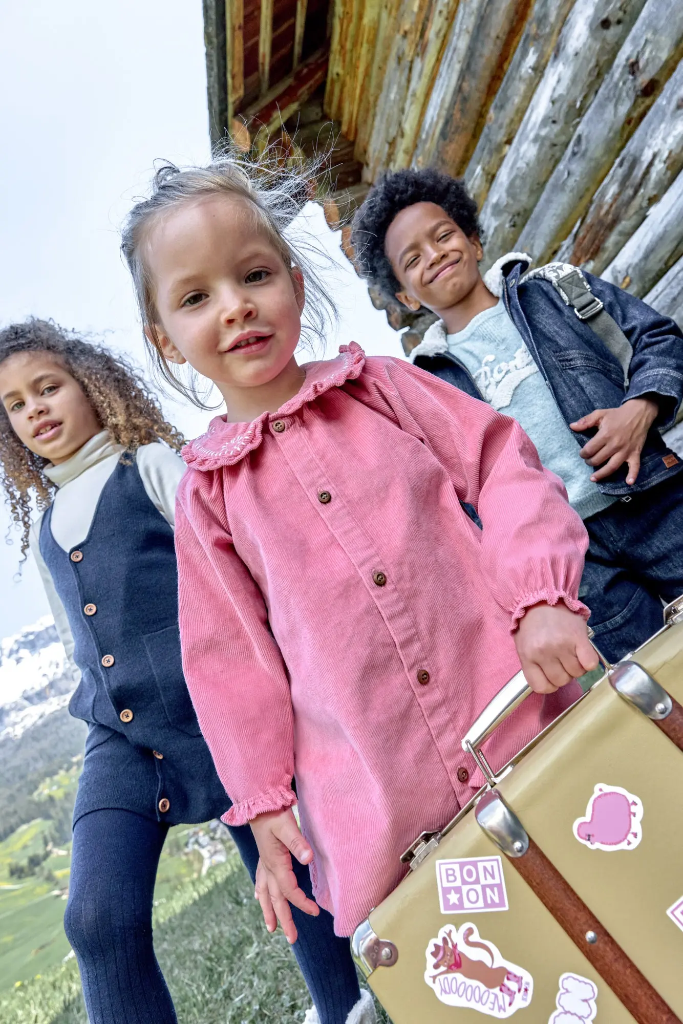 Discover the Dress Minnie, a wonder in Velvet Pink Pinkye from the "New Barn" collection. With sound Collar EmbroideredAnd her flared cup, she invites adventures in the spirit of the great west! Perfect for twirling in style, it is put in front and offers elastic sleeves for optimal comfort. To associate with boots for a stroll through the imaginary meadows!
