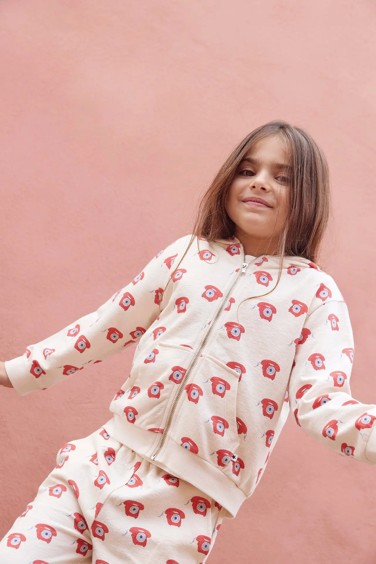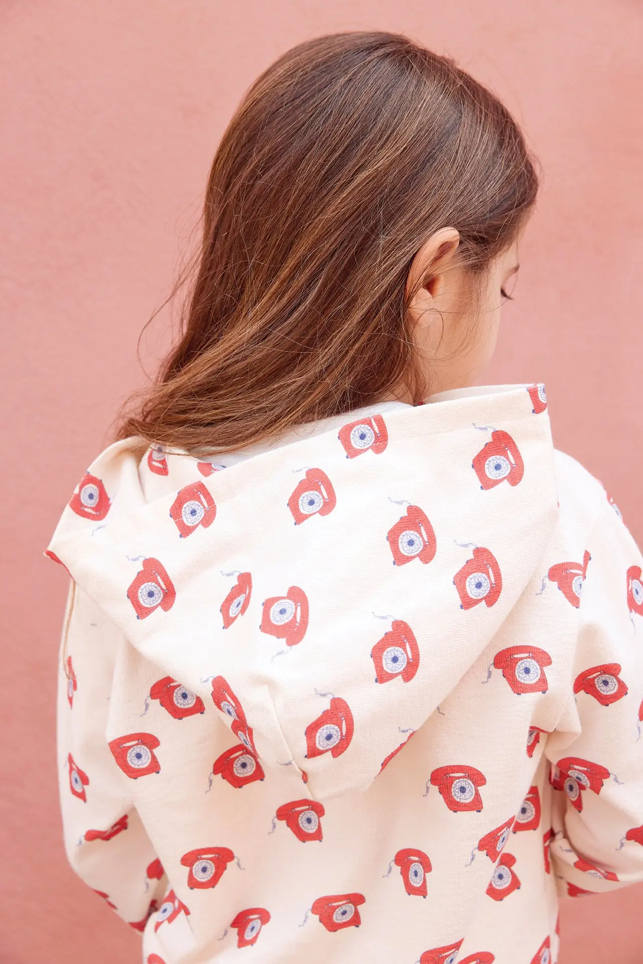 Discover the Lu Phone hoodie, perfect for little adventurers! With its phone print, it invites you on a fun retro journey. Made from 100% cotton, it ensures optimal comfort for all your summer getaways. Pair it with jeans or shorts for a relaxed and trendy look, ready for summer!