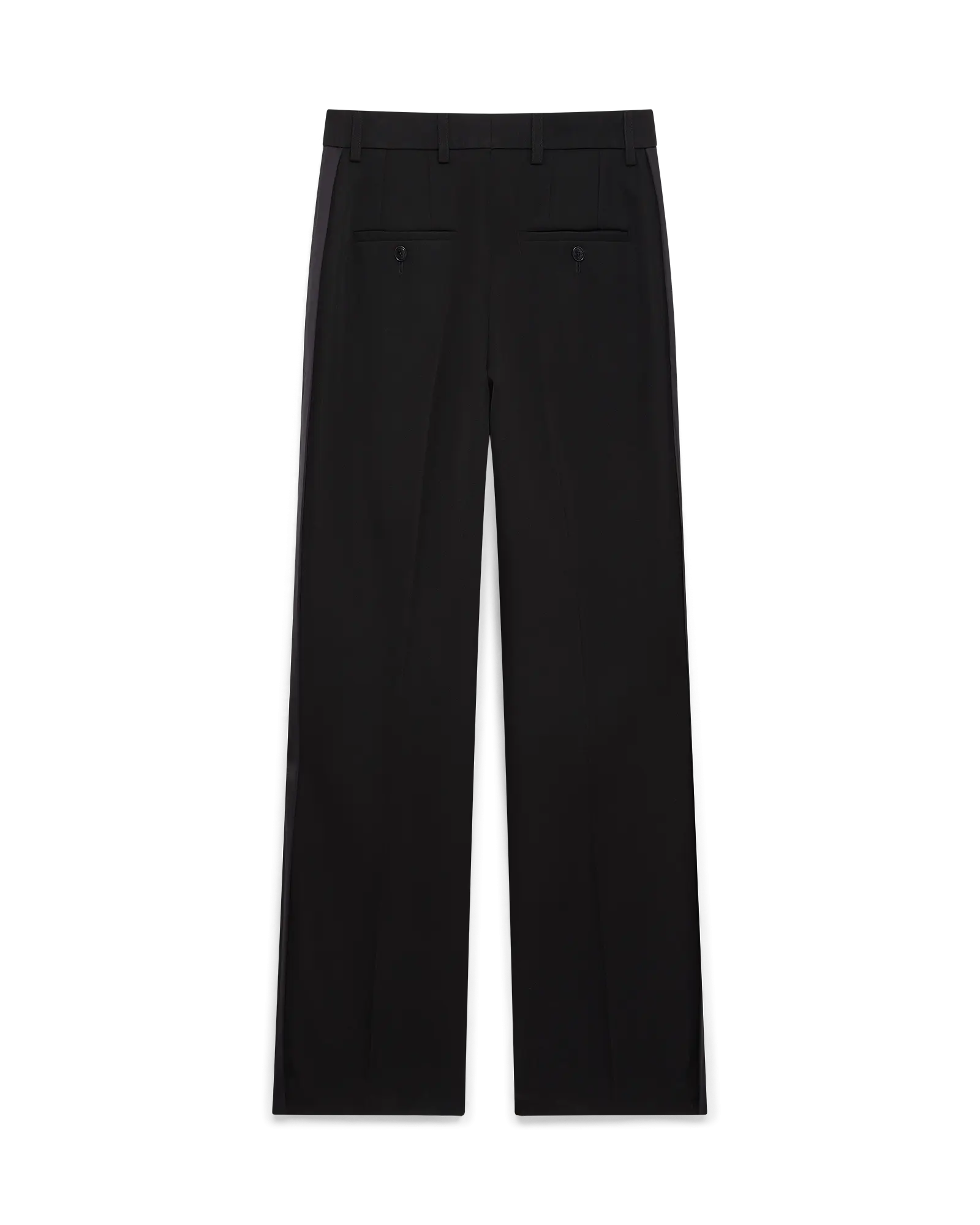 The wool tailoring pleated trousers are a straight-leg design crafted from tailoring fabric. Completed with front pleats, zip closure, slanted front pockets, a lining, belt loops, welt back pockets, and viscose stripe panel down the sides.