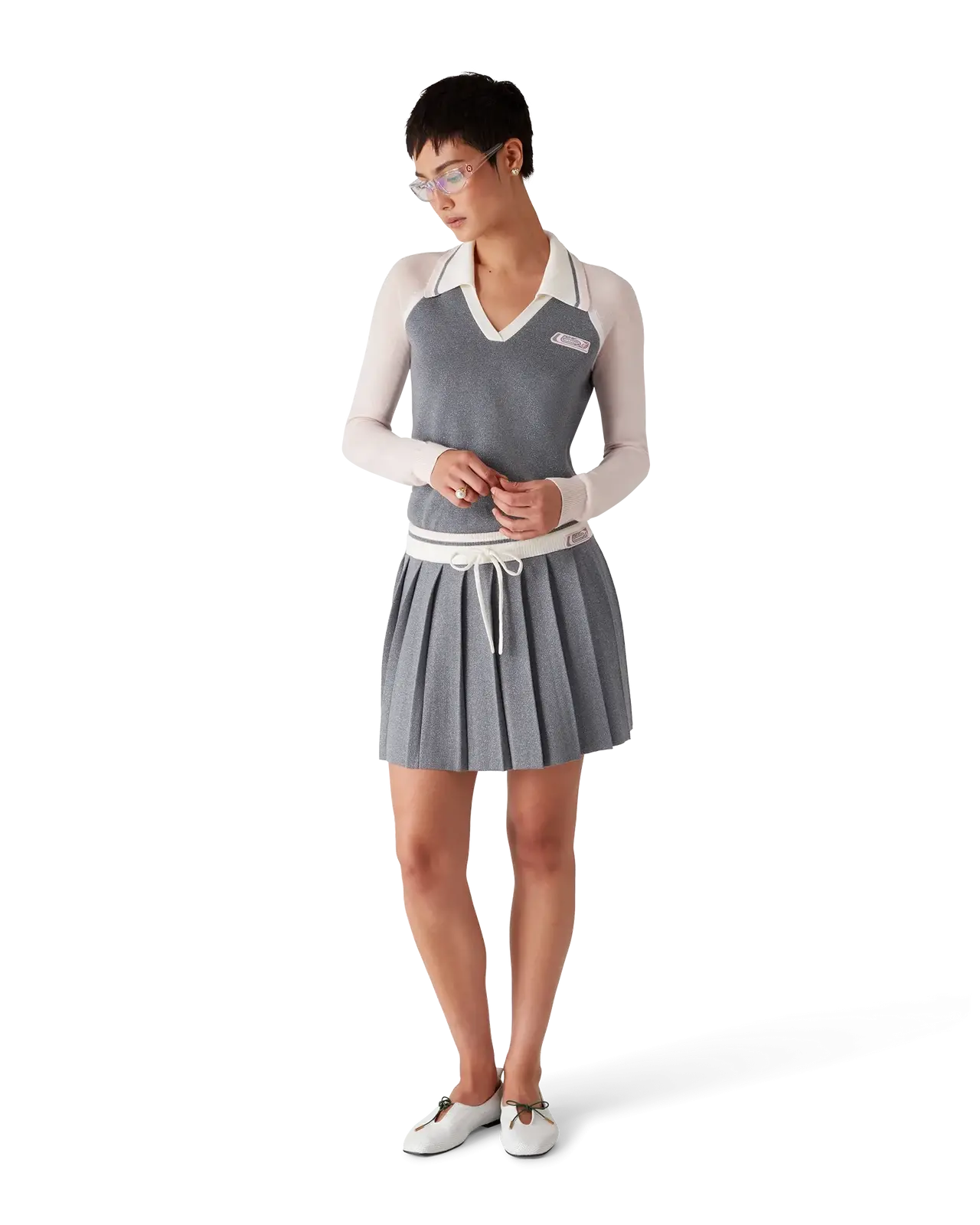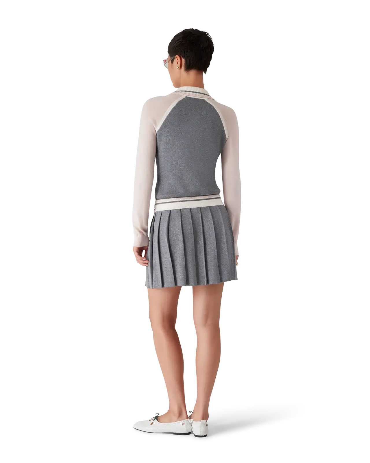 The merino knit tennis skirt is a classic design crafted from merino wool. Completed with a pleated yoke, a contrast rib waistband, and drawstring fastening.