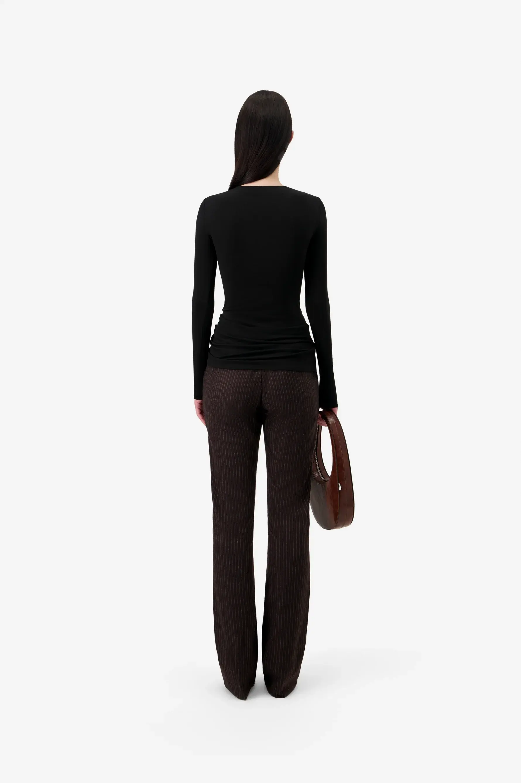 A wardrobe essential elevated through detail, this long-sleeve top is cut close to the body with precise side-gathered construction. A signature silver-tone logo redefines sleek with a technical flair.