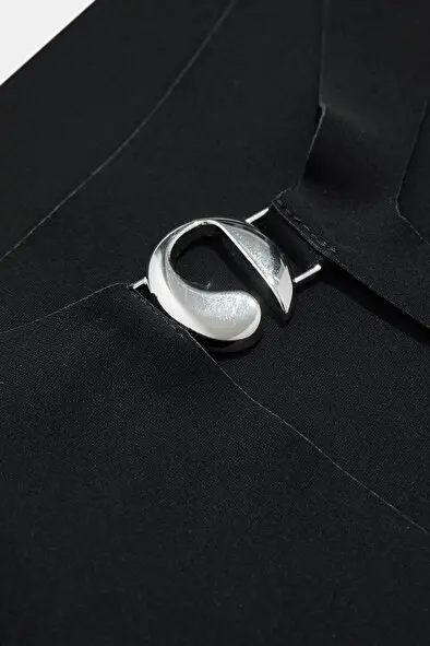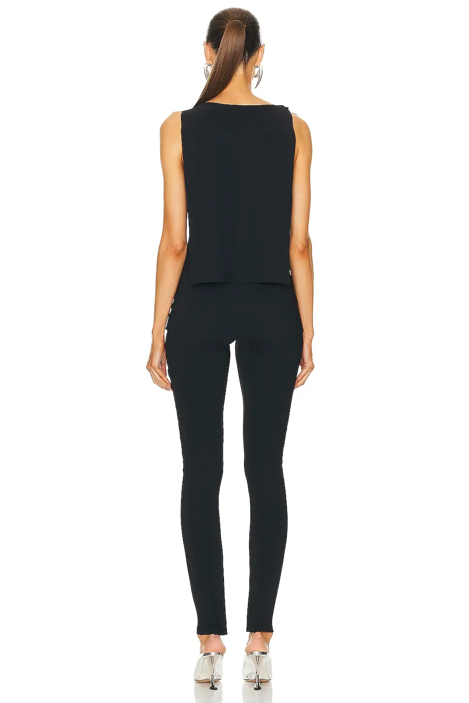 75% polyamide, 25% elastane. Machine wash. Hidden side zipper closure. Silver-tone monogram hardware at shoulder strap. Neckline cut-out. Jersey fabric with draped back.