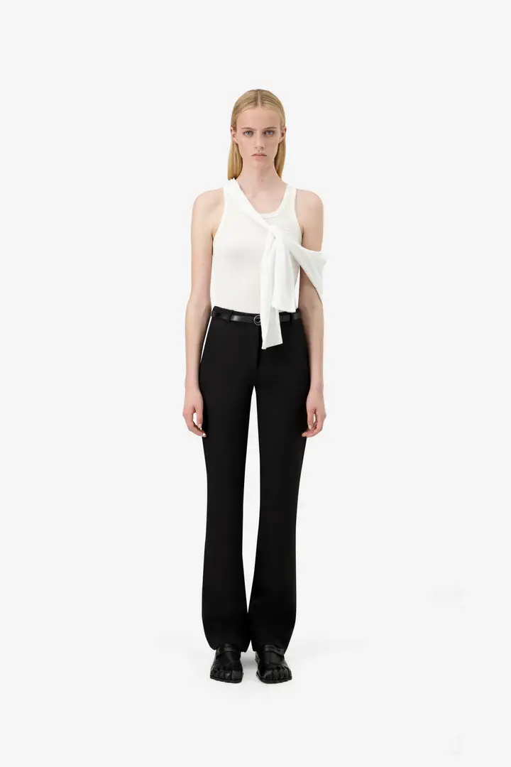 This sculptural tank top is cut from a soft cotton-modal blend with a second-skin feel. A knotted jersey panel is seamlessly integrated across the front, mimicking the casual gesture of a sweatshirt tied around the shoulders. The back features a folded construction detail - a subtle nod to Coperni's architectural codes. Clean, subversive and playfully practical.
