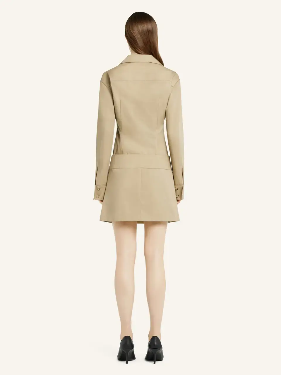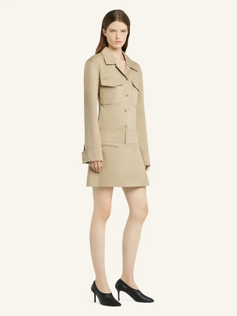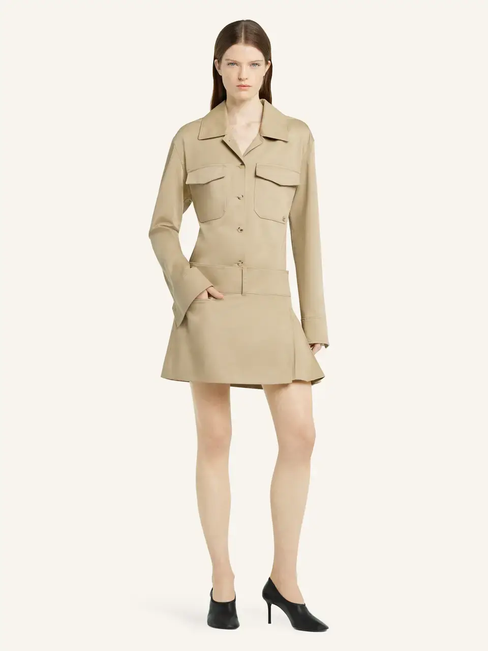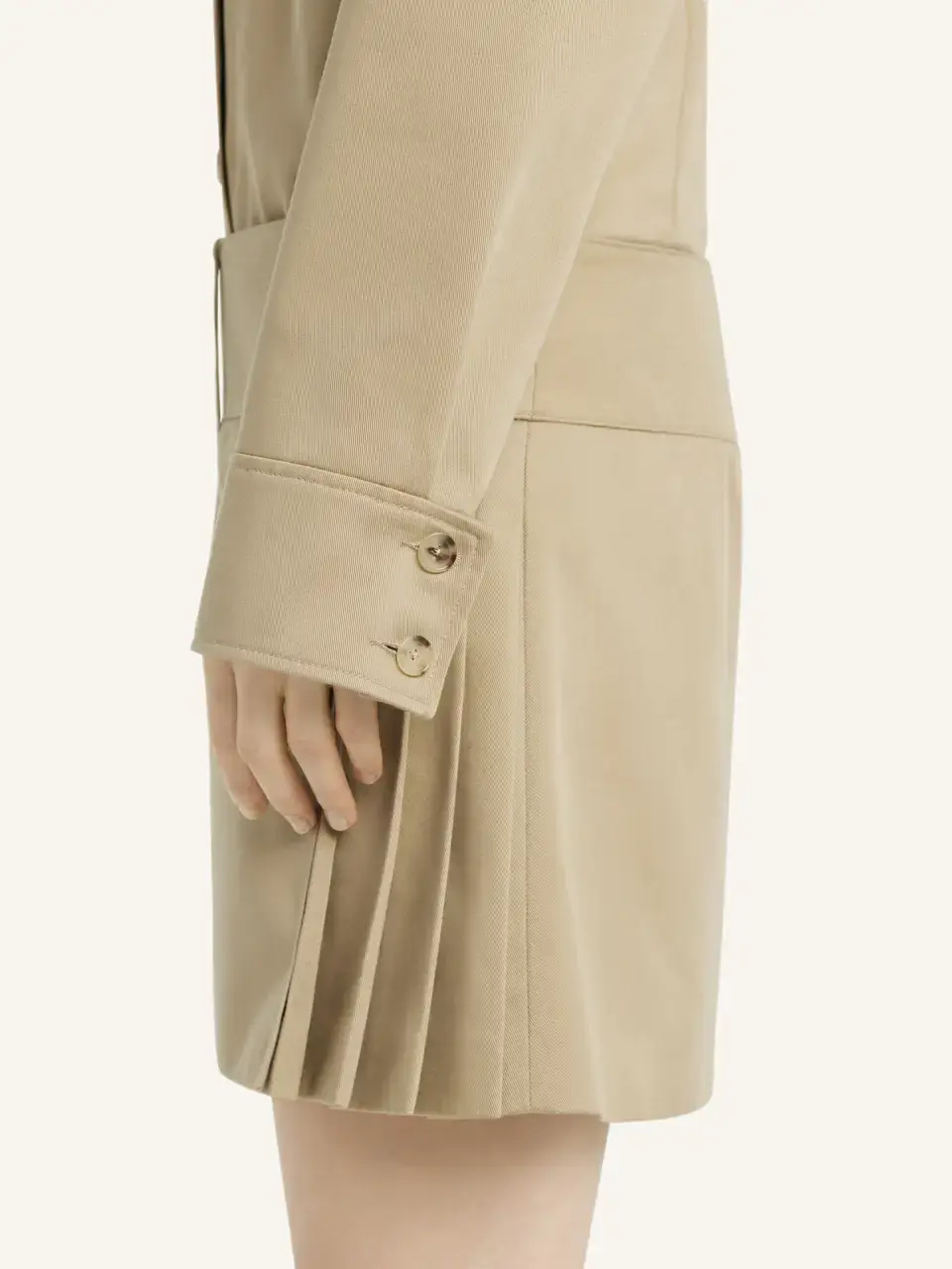 Pleated panel polycotton mini skirt. Welt side pocket.