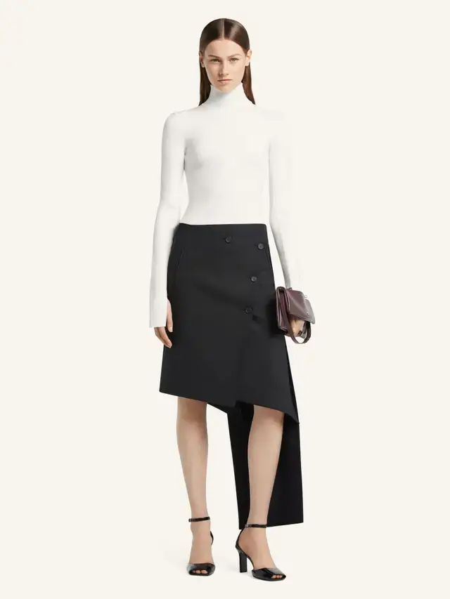 Mockneck interlock sweater with sleeve detail and AC logo on front.