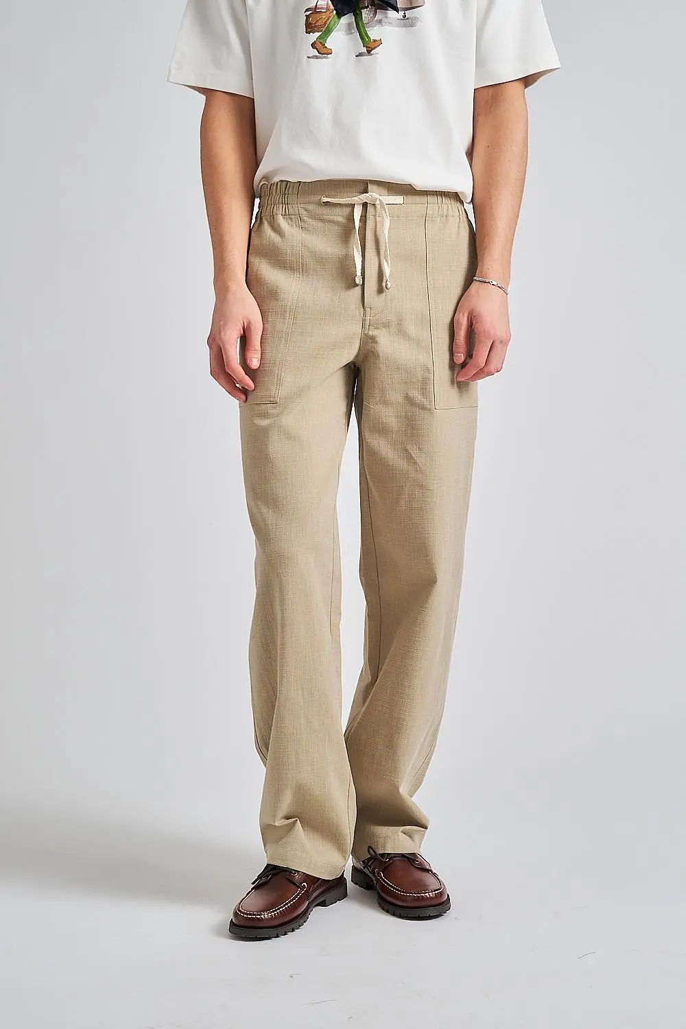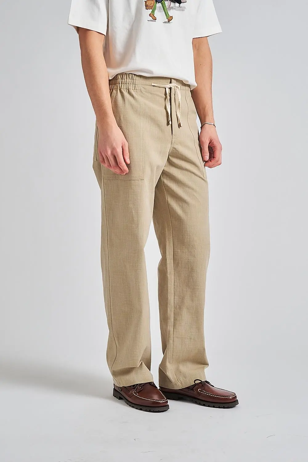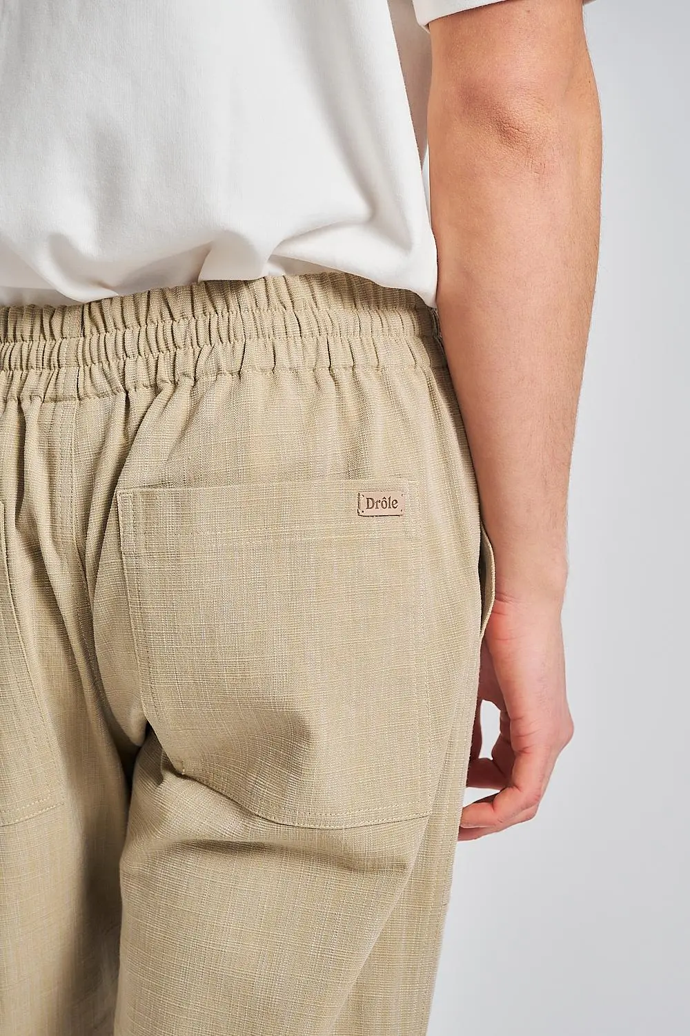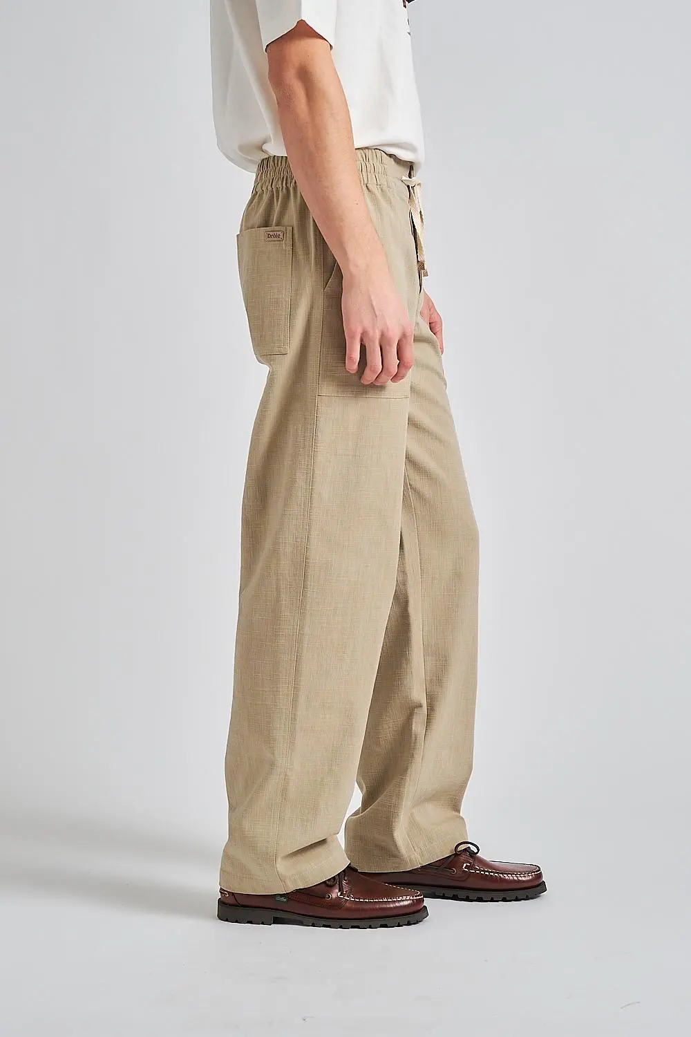 • Drawstring waist with leather tips