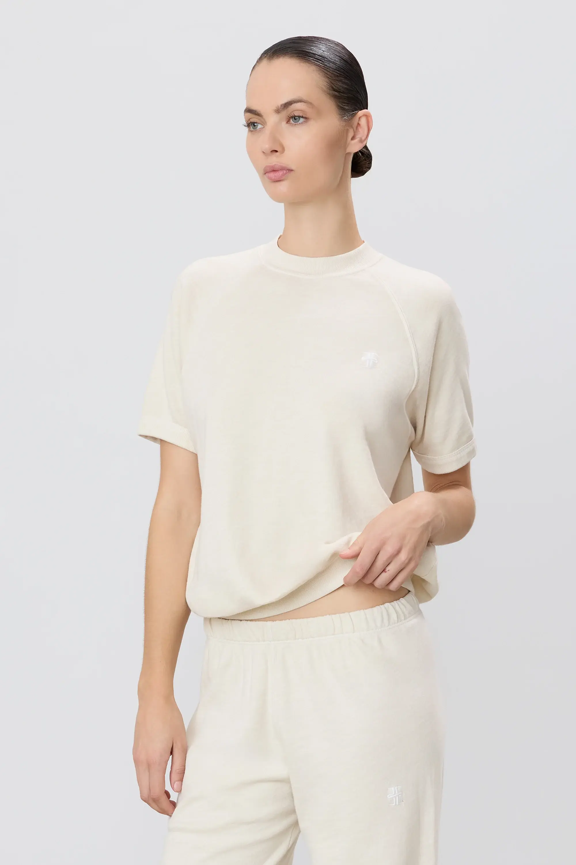 ÉTERNE's Short Sleeve Raglan Sweatshirt is crafted from our lightweight French terry, offering a relaxed fit and a regular length—a versatile essential for everyday wear.