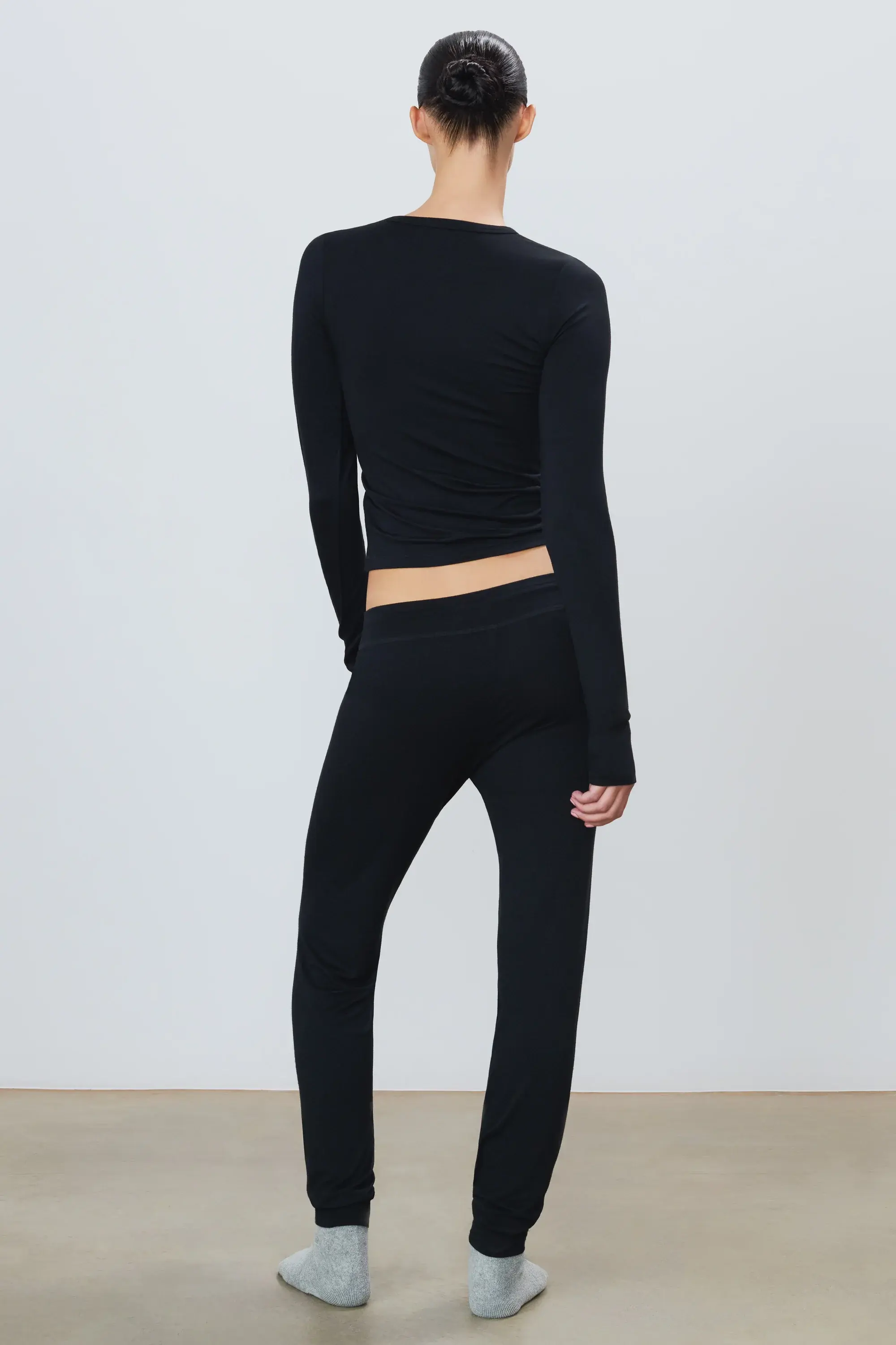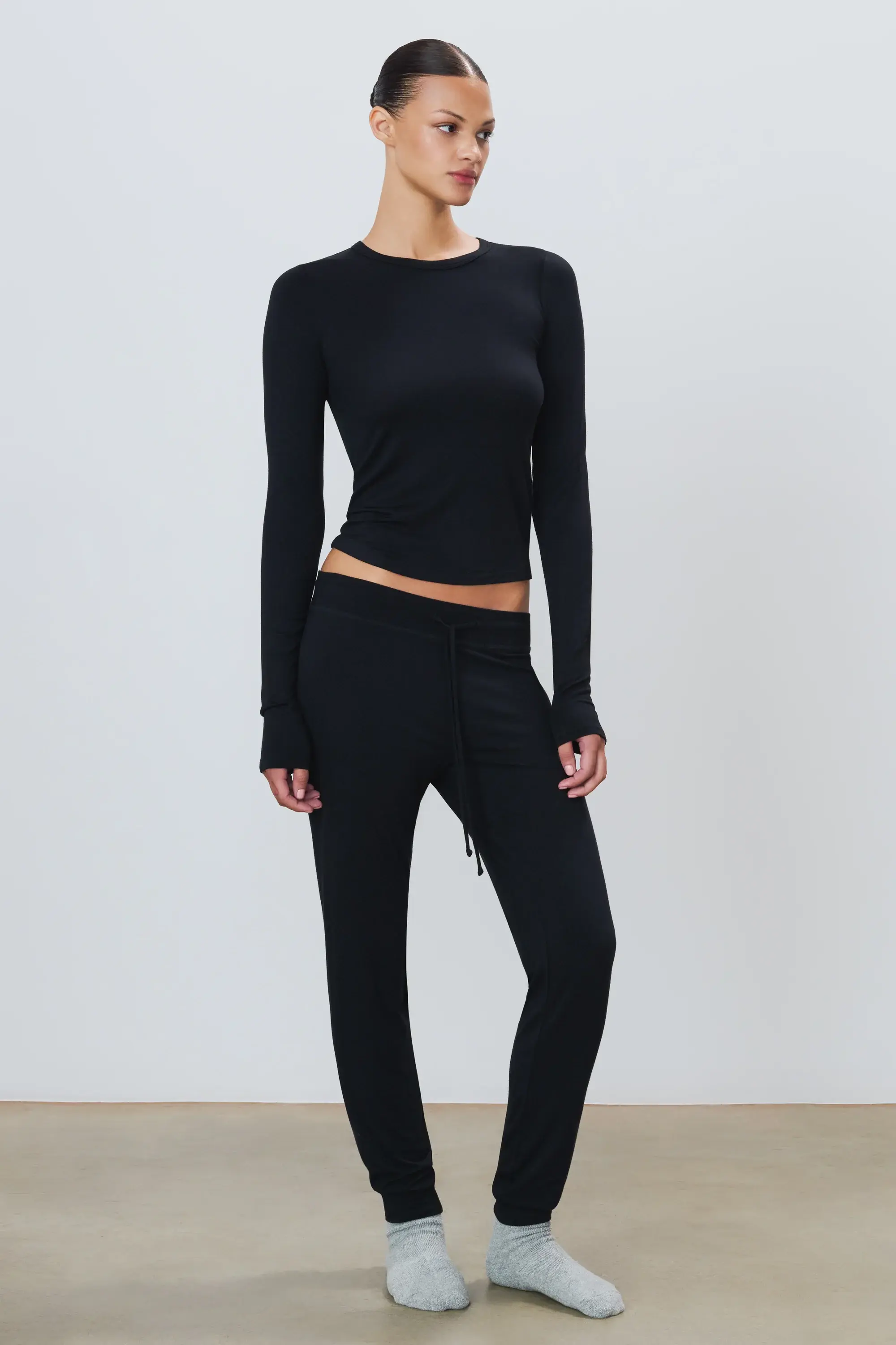 ÉTERNE's Drawstring Pant is crafted from our soft jersey modal blend, offering a slim fit and our signature long length—a versatile essential for everyday comfort.