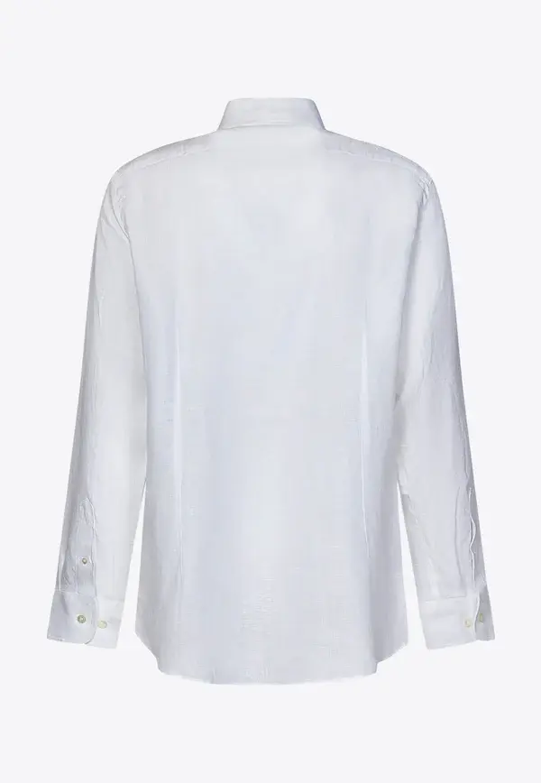Material: 100% linen Pointed collar Long sleeves Front button fastening Tonal logo on chest Made in Italy