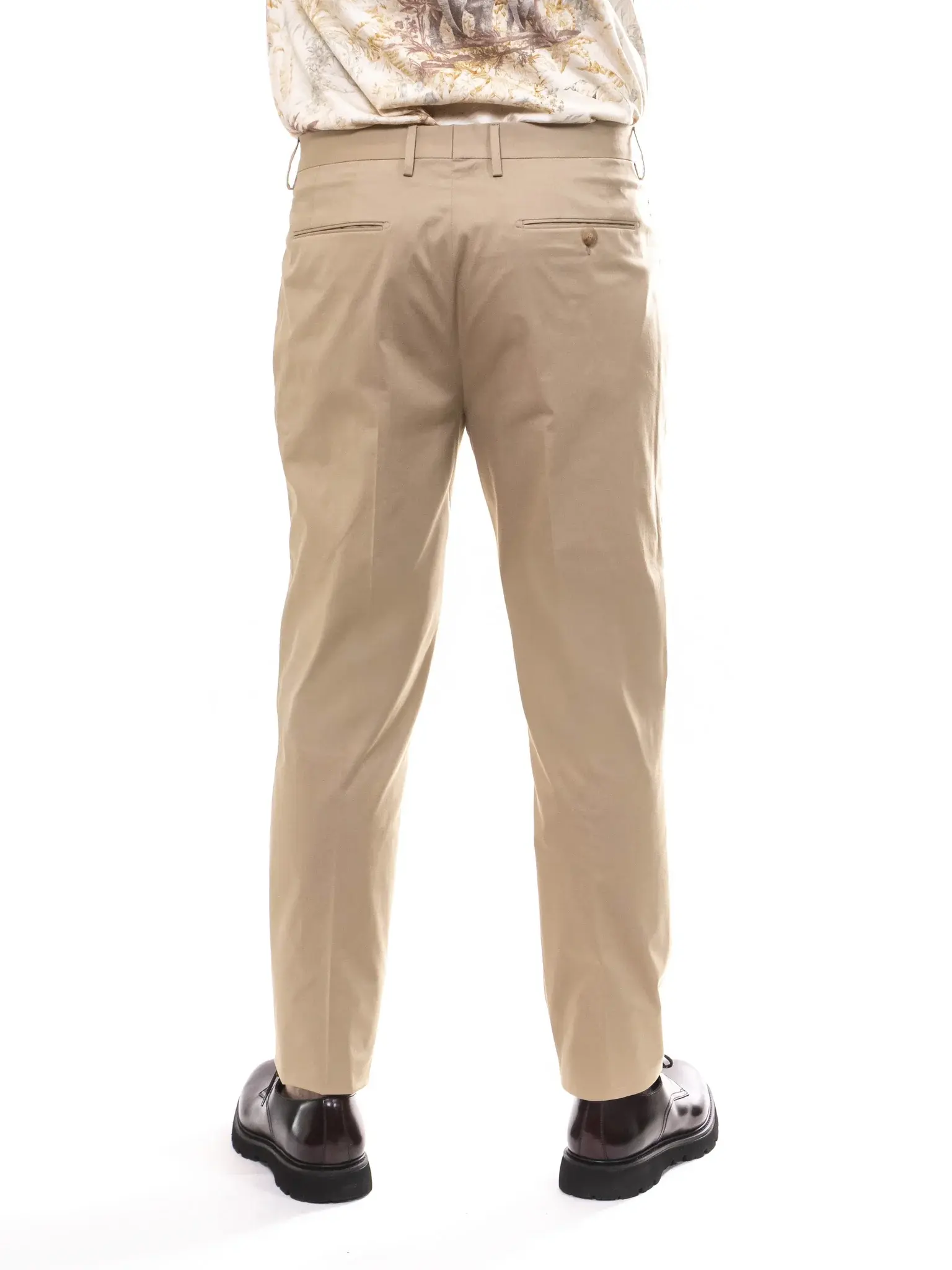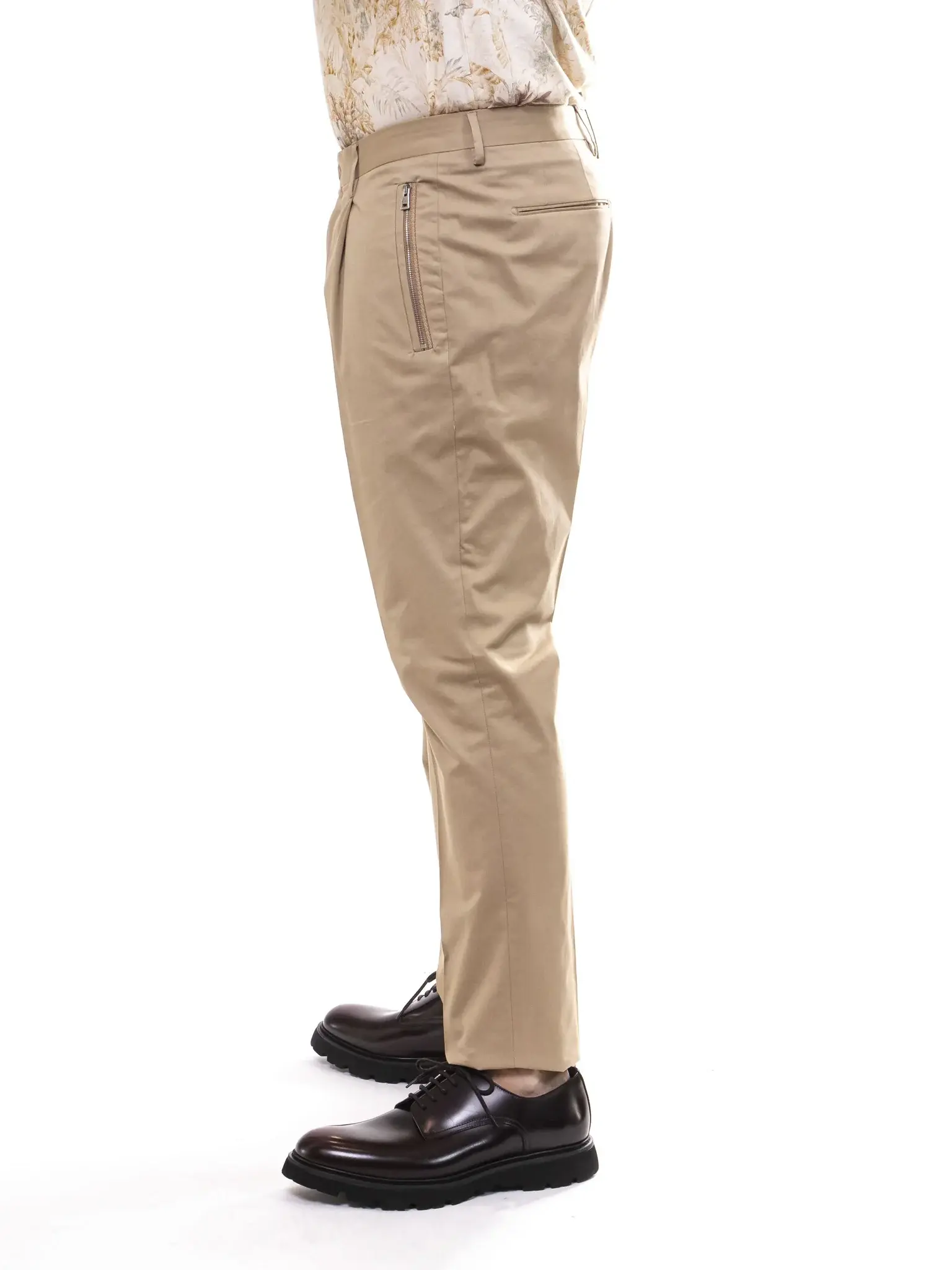 Pantalone Carrot con pinces Chiusura con zip e bottone Tasche laterali con zip Due tasche a filetto posteriori COMPOSIZIONE: 98% Cotone, 2% Elastan