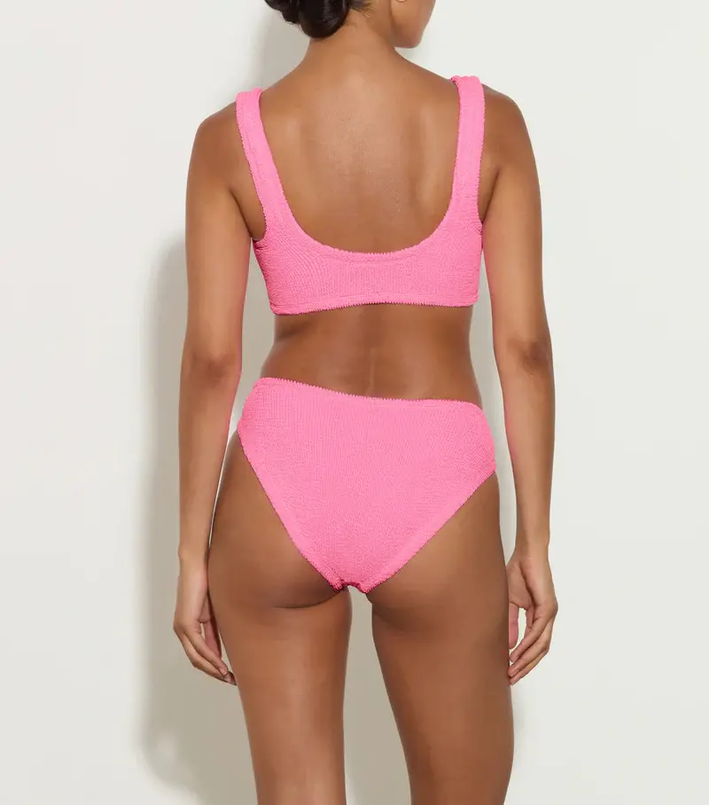 Supportive, seventies, sleek. With a deeper waist band than our regular briefs and gathered bow-effect detailing on the top, Bonnie has easy retro flair.