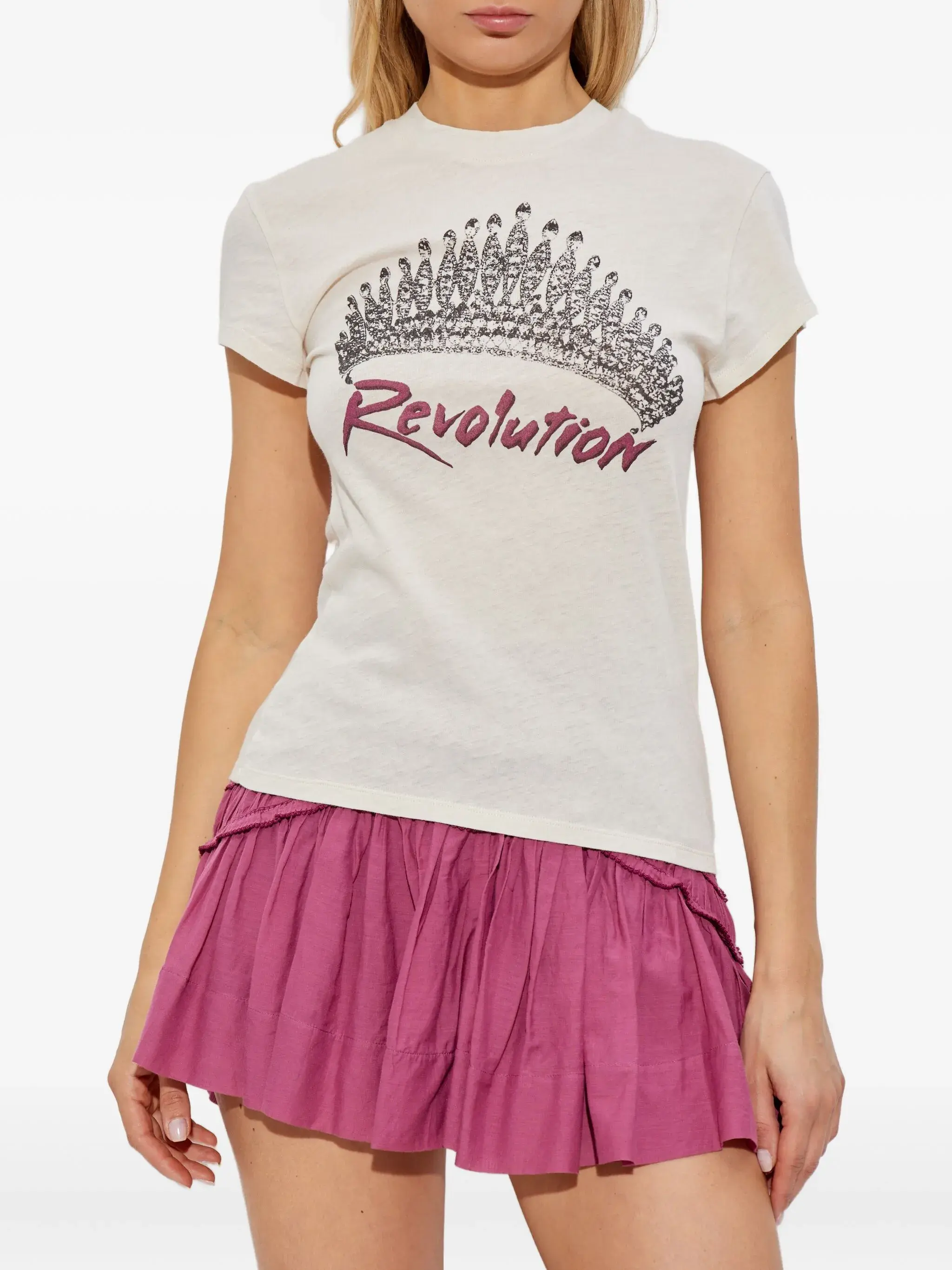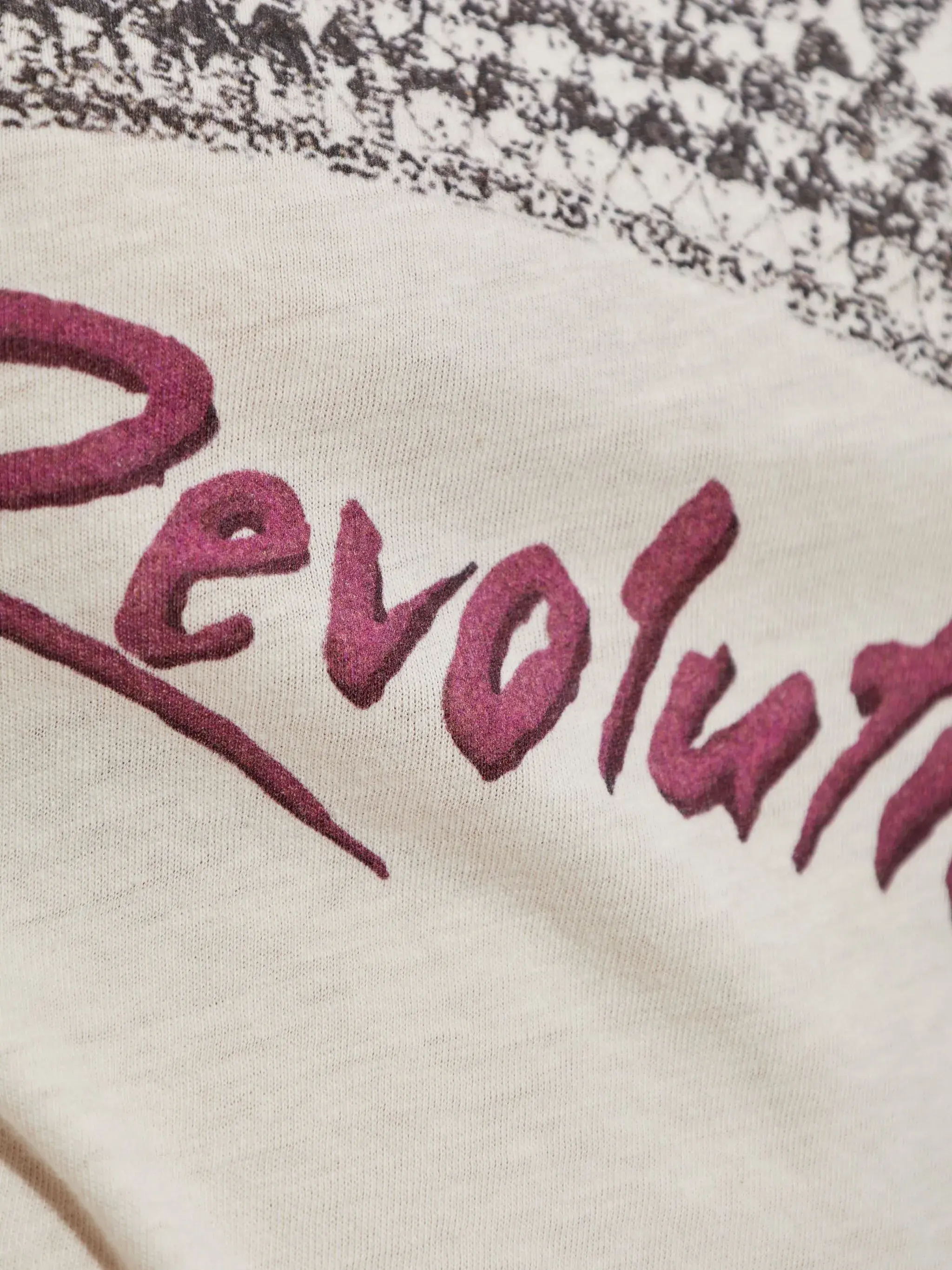 Printed cotton T-shirt Round neckline with ribbed finishes Long sleeves Printed pattern and "Revolution" inscription in front Straight cut