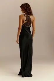 - Long silk dress with an embroidered tiger tattoo effect on the back for a sensual and powerful tattoo effect.