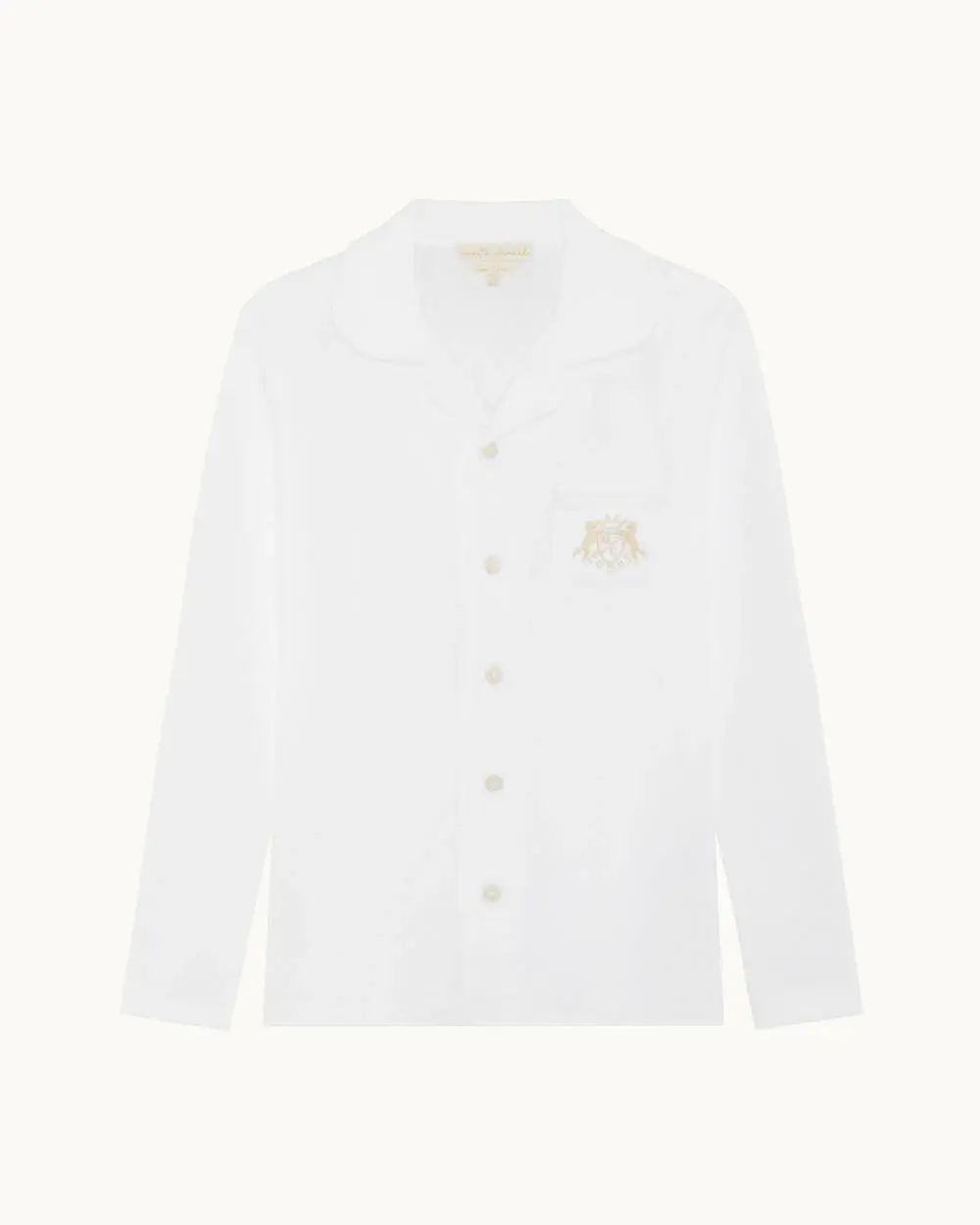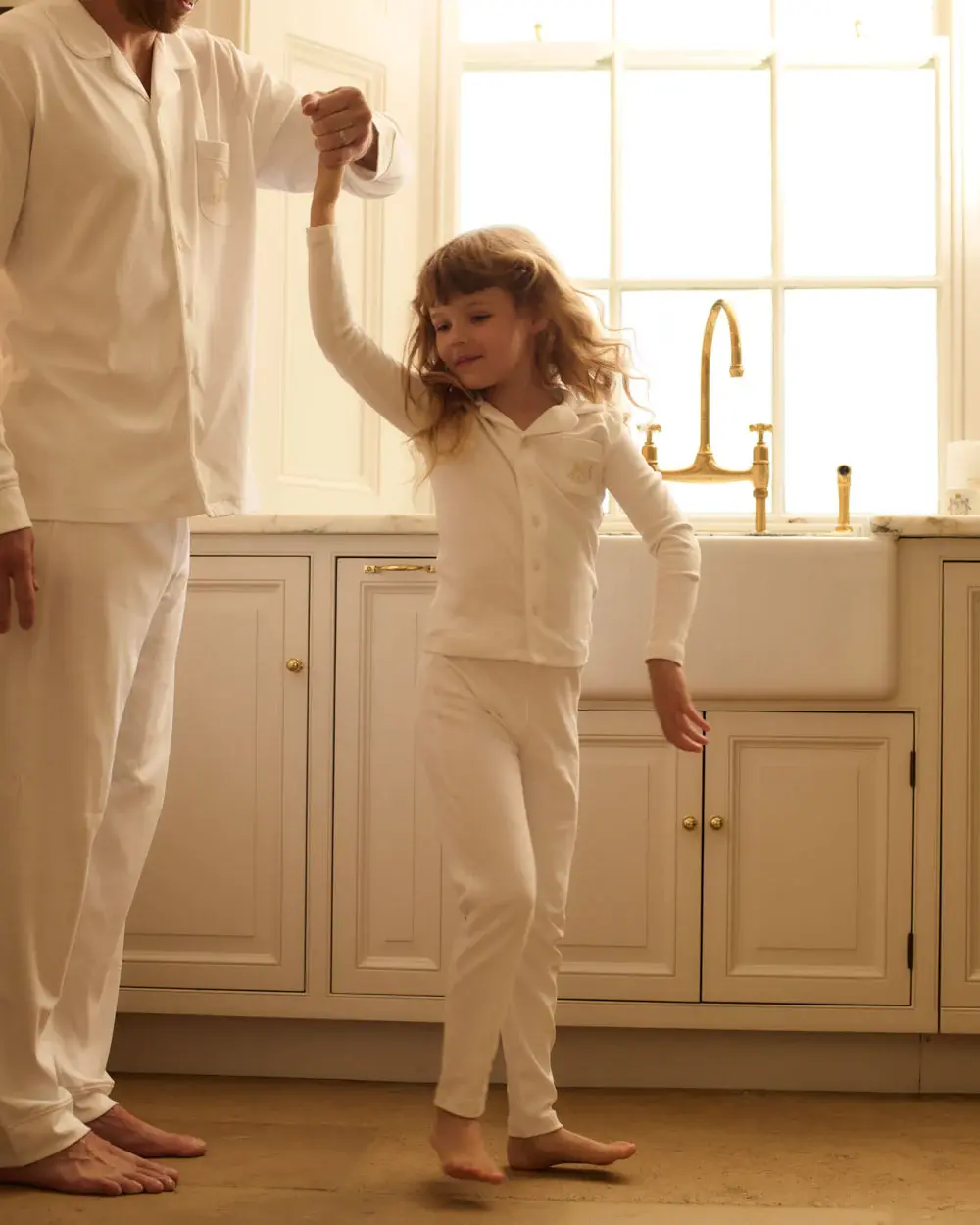 Made from the softest Pima cotton for the most luxurious and lightweight feel, perfect for transitional dressing — the Crest pyjama features our heritage crest, delicately embroidered in gold with a tonal trim for the perfect finish. Designed with comfort and quality in mind, perfect for bedtime — the collection is classic in design, available as part of Marie-Chantal’s Family Matching Collection with beautiful accessories to match; from bath to bed.