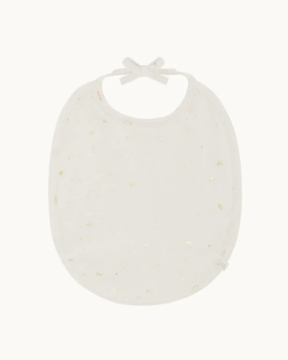 - Bib features mock-bow neck tie detail with pre-secured snap fastening opening