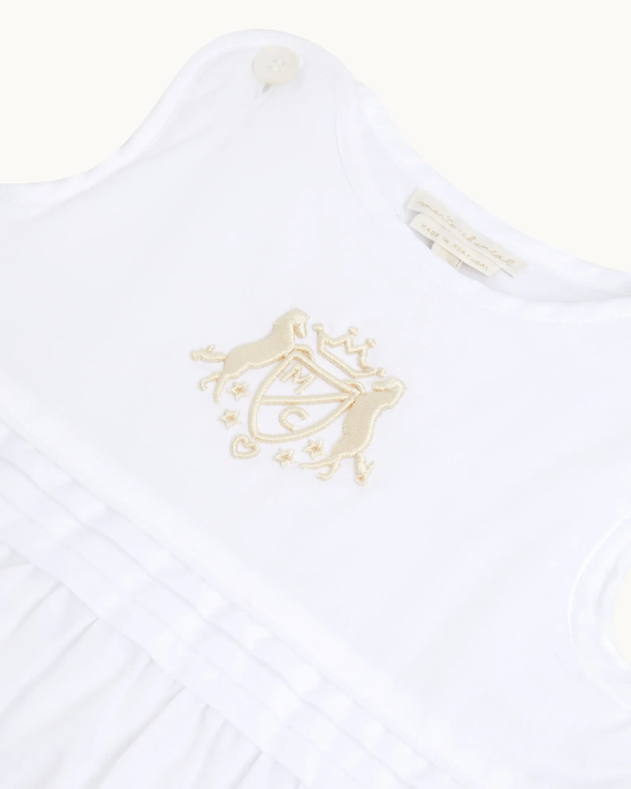 Made from cotton sateen - the Crest sleepnest features our delicately embroidered design, with a pleated trim and pearlized button details for a beautiful finish.
