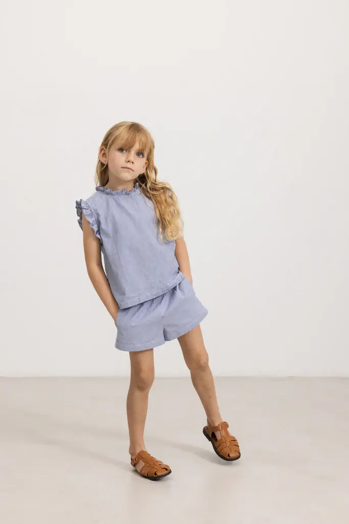 Summer shorts with woven stripes, side pockets and elastic waist. The shorts are made of soft and light cotton.