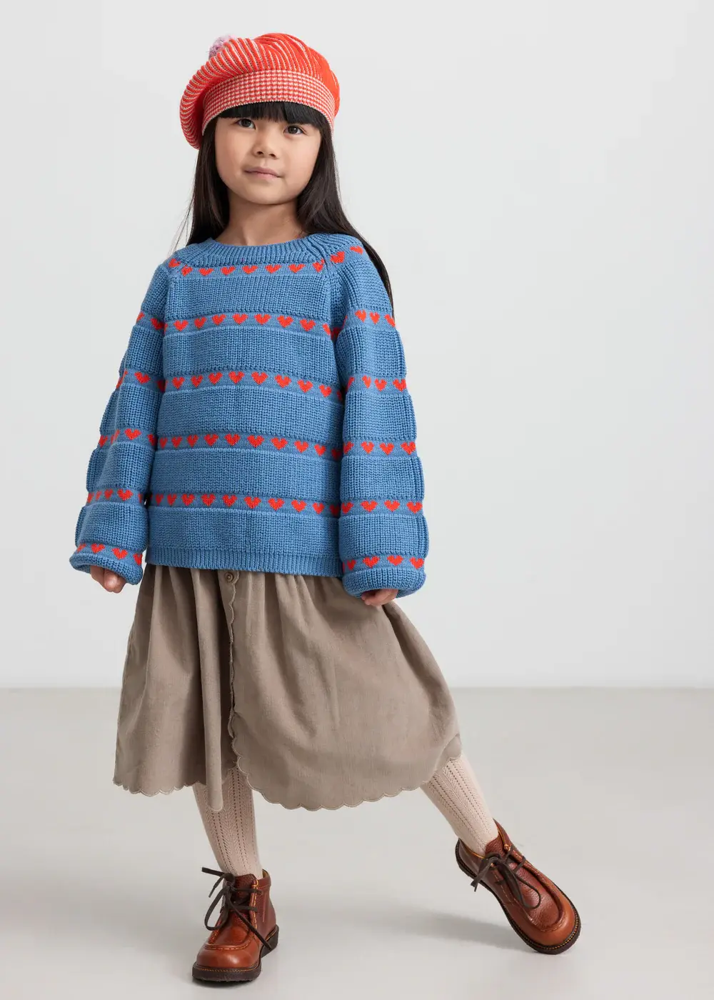 Loose-fitting knit blouse with a round neck, raglan sleeves and fine heart-knit details. The knit blouse is both warm and comfortable to wear.