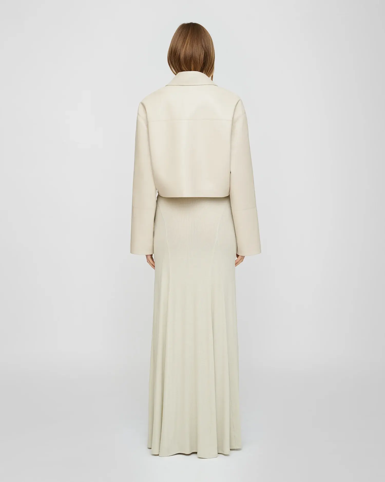 Defined by modern restraint, Made in Okobor™/FAUX SHEARLING, OMOLARA Jacket in creme delivers a considered balance of function and finesse. Designed for regular fit, it layers effortlessly. It reflects the collection’s focus on form, shadow and subtle movement.