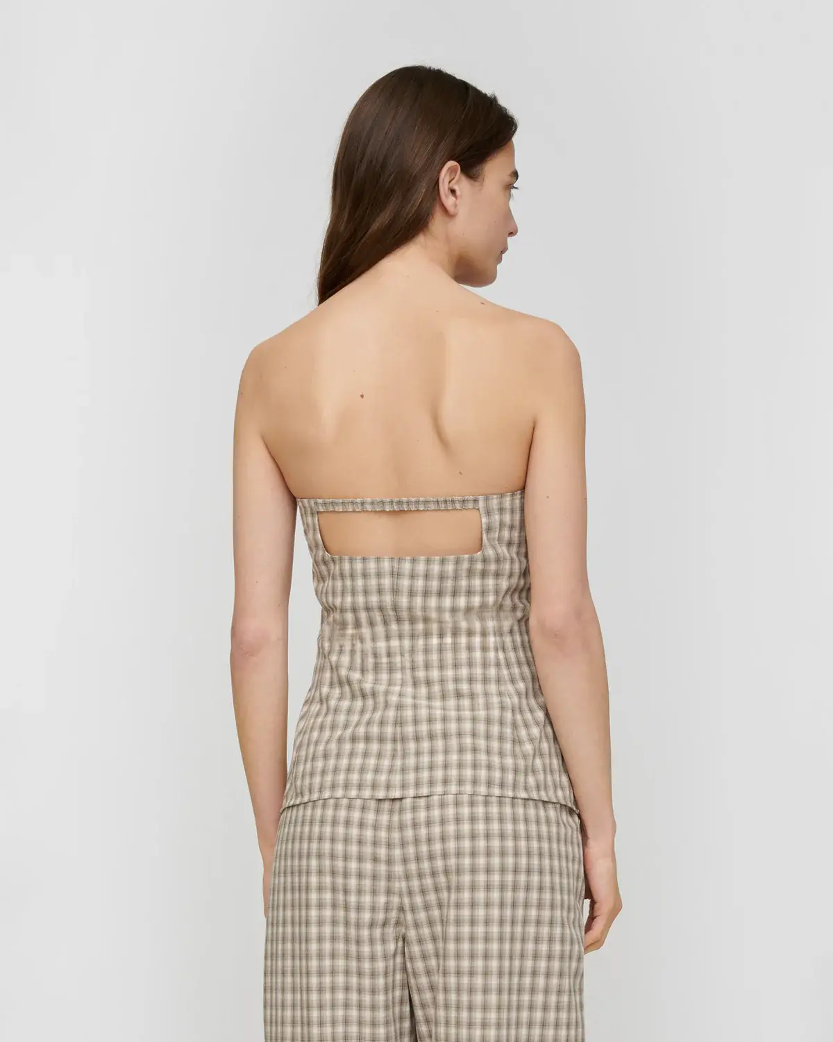 Designed with quiet precision, made in Checked shirting, the BRITES Top in creme/grey reflects the collection’s focus on form, shadow and subtle movement. Finished with close to the body, it moves with ease.