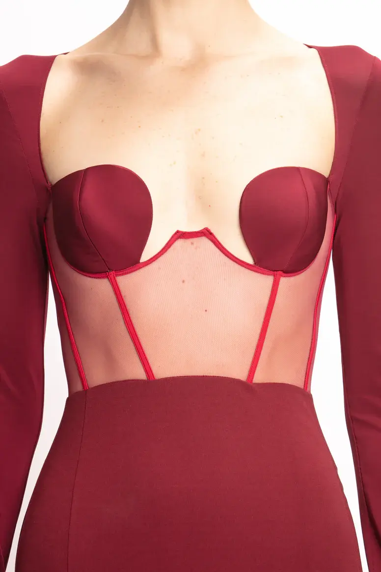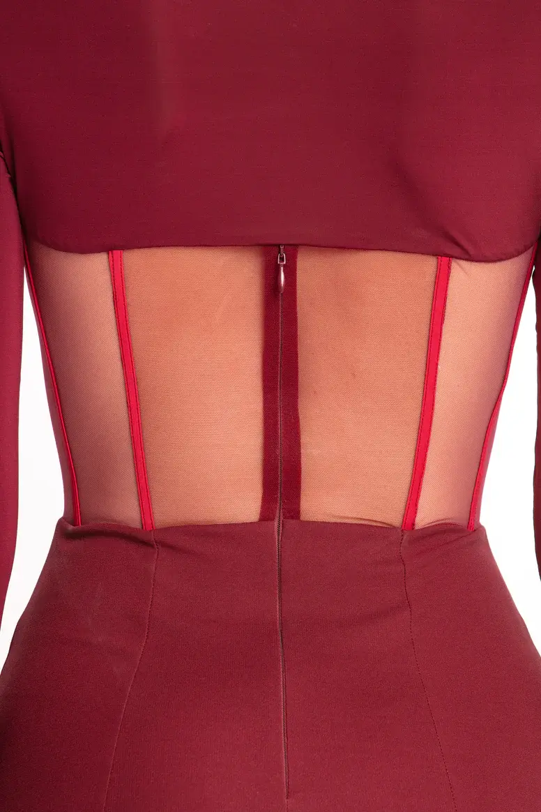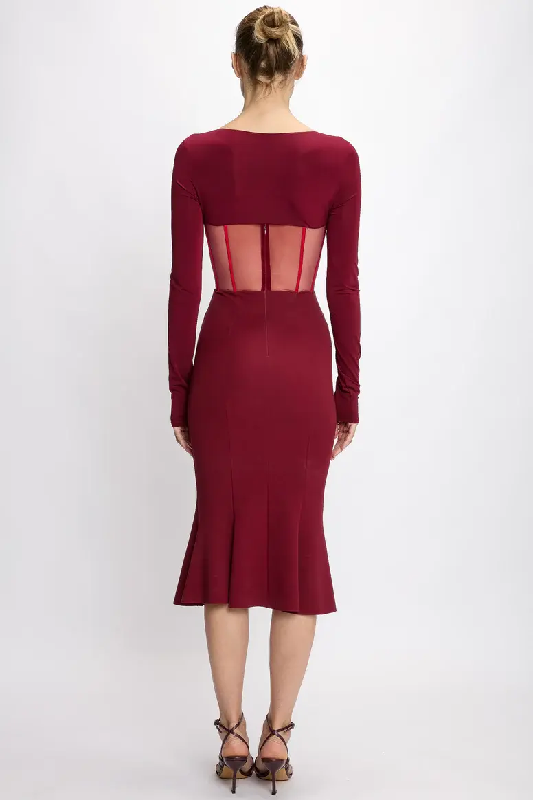 CORSETTED MIDI DRESS WITH RAGLAN SLEEVE