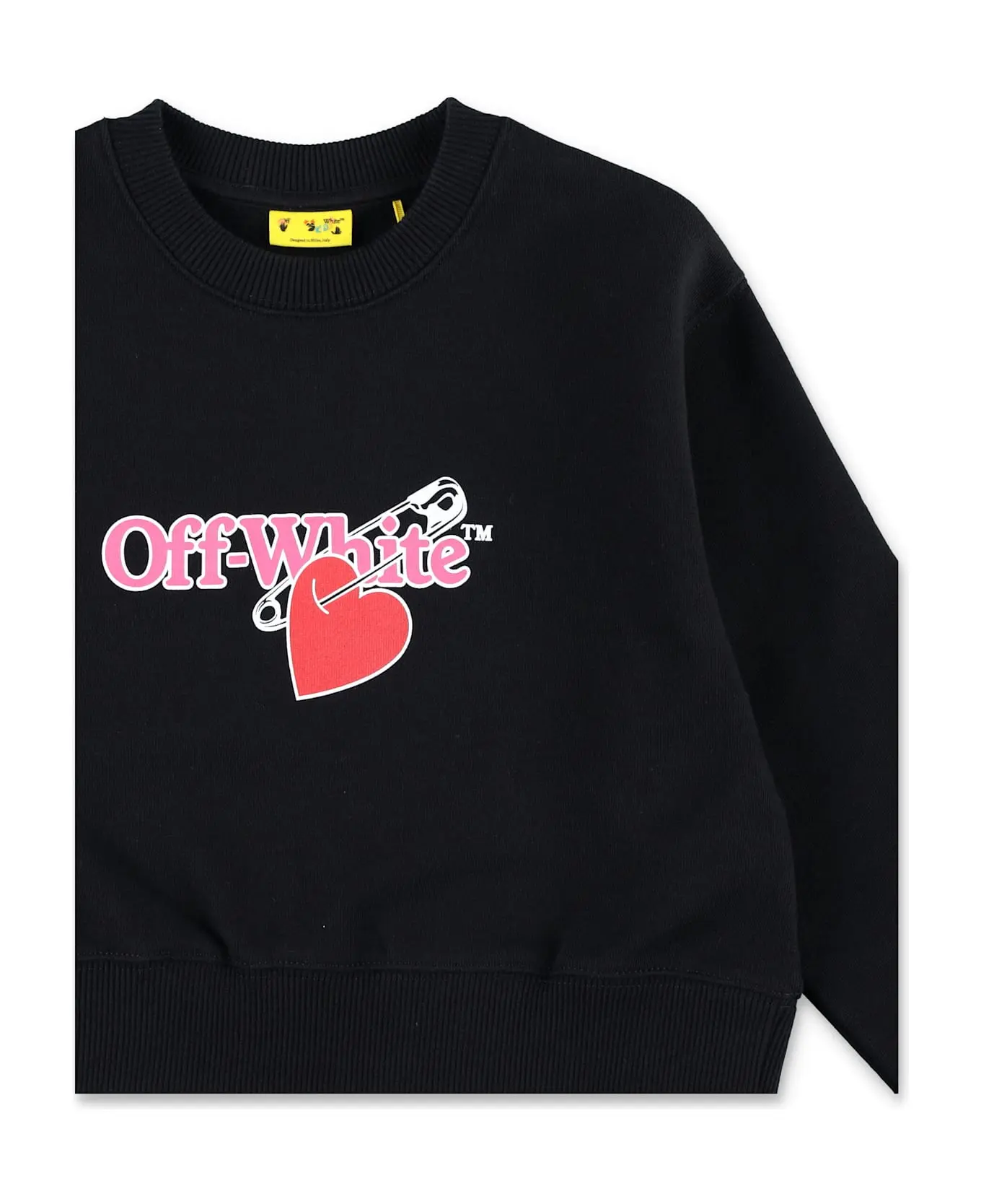 Cropped Cotton Sweatshirt With Heart Print