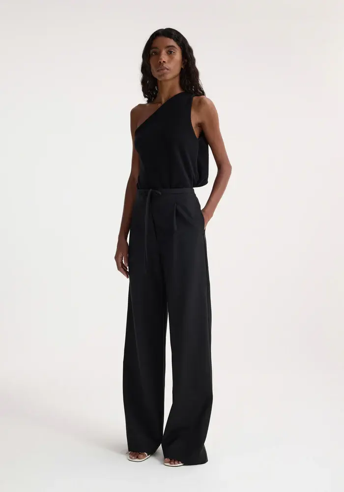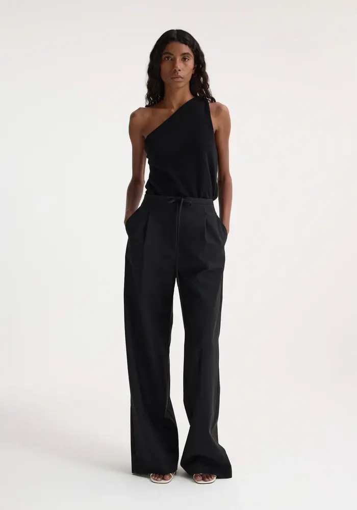 Our relaxed drawstring trousers crafted from a soft wool and mohair blend fabric, offering a perfect blend of elegance and ease. Designed in a long flowing silhouette with front pleats, back welt pockets, and a casual chic drawstring waistband.