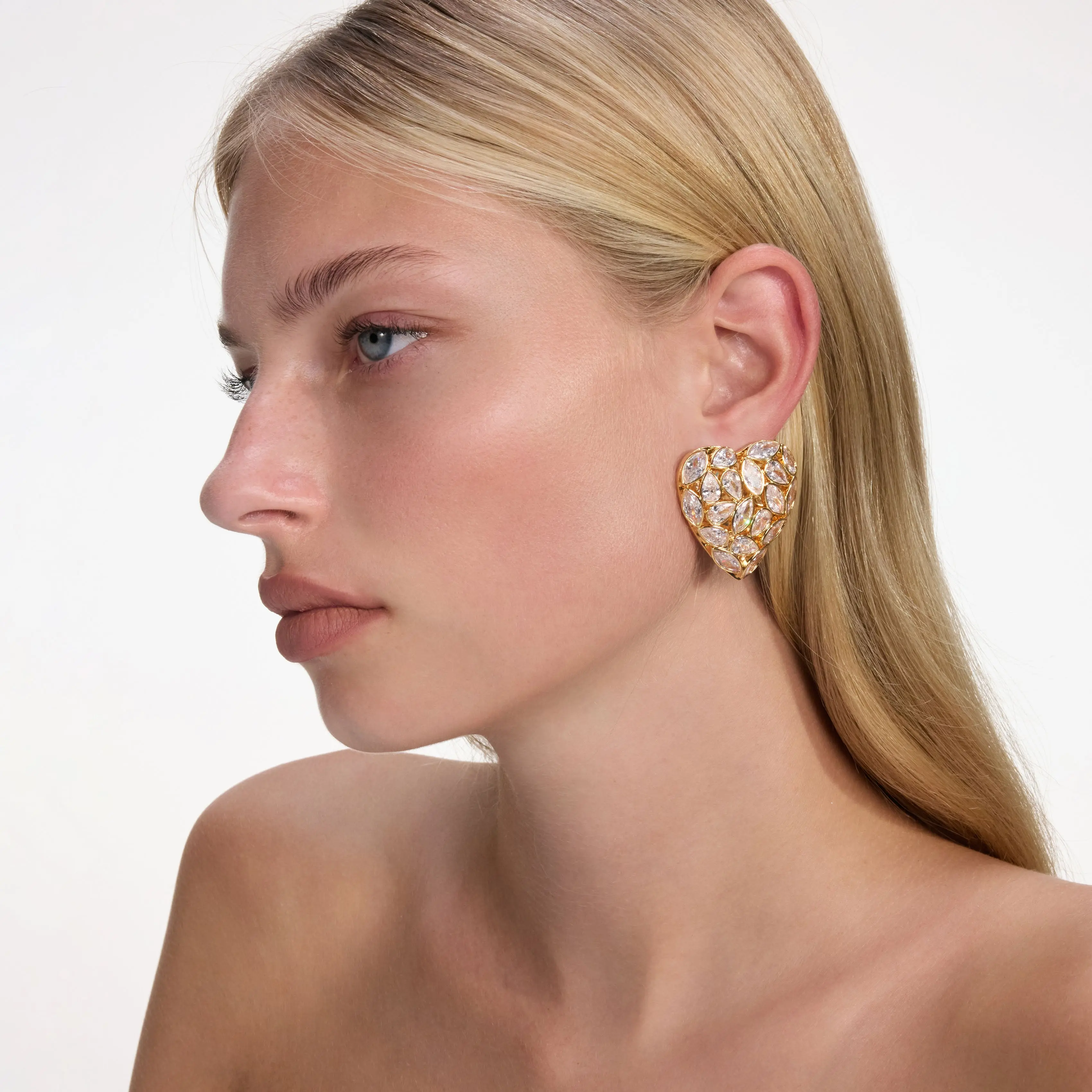 Sparkling crystals make up these brilliant heart-shaped earrings that dazzle with sculptural flair. Pair with gowns for special occasions or use them to dress up an off-duty ensemble.