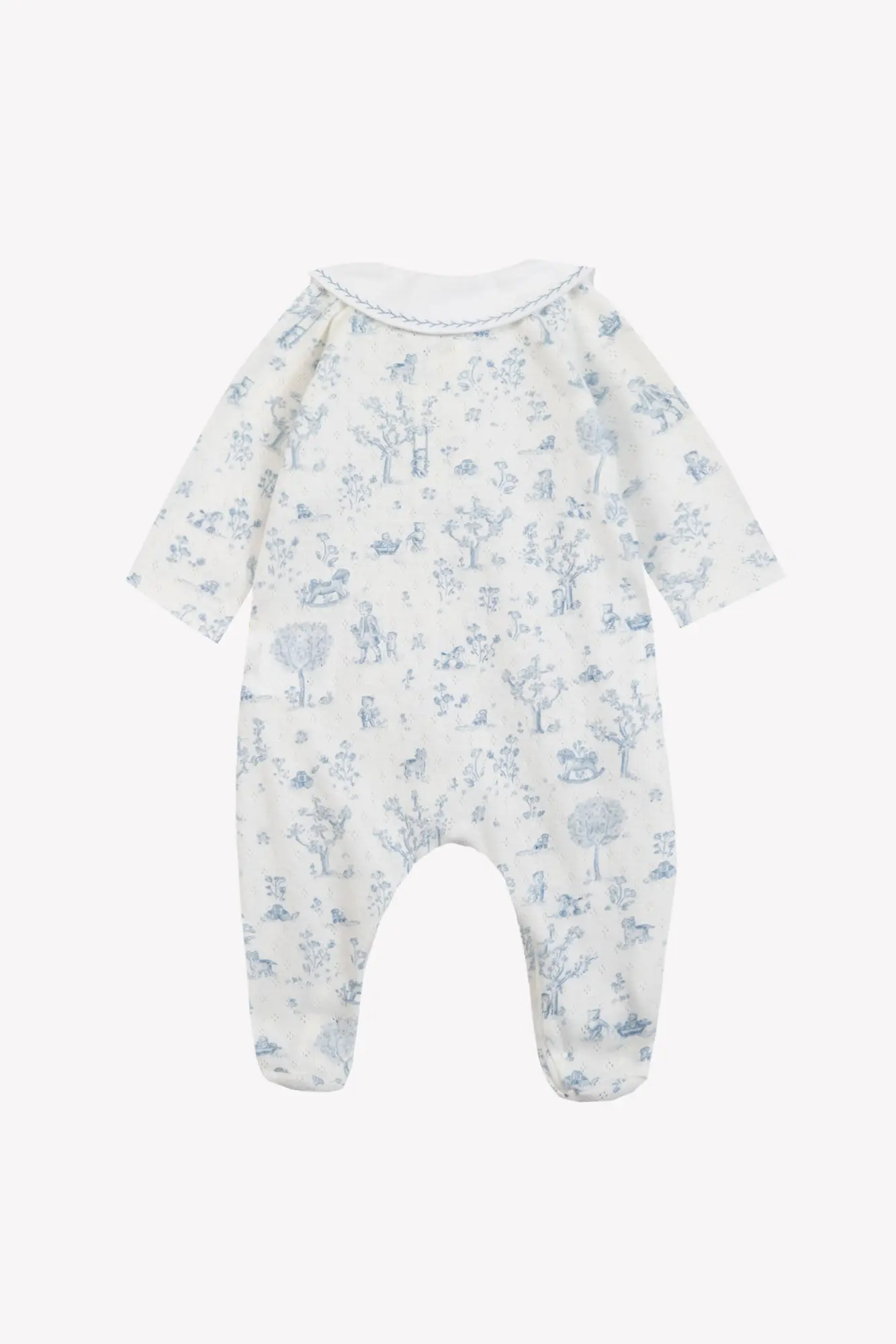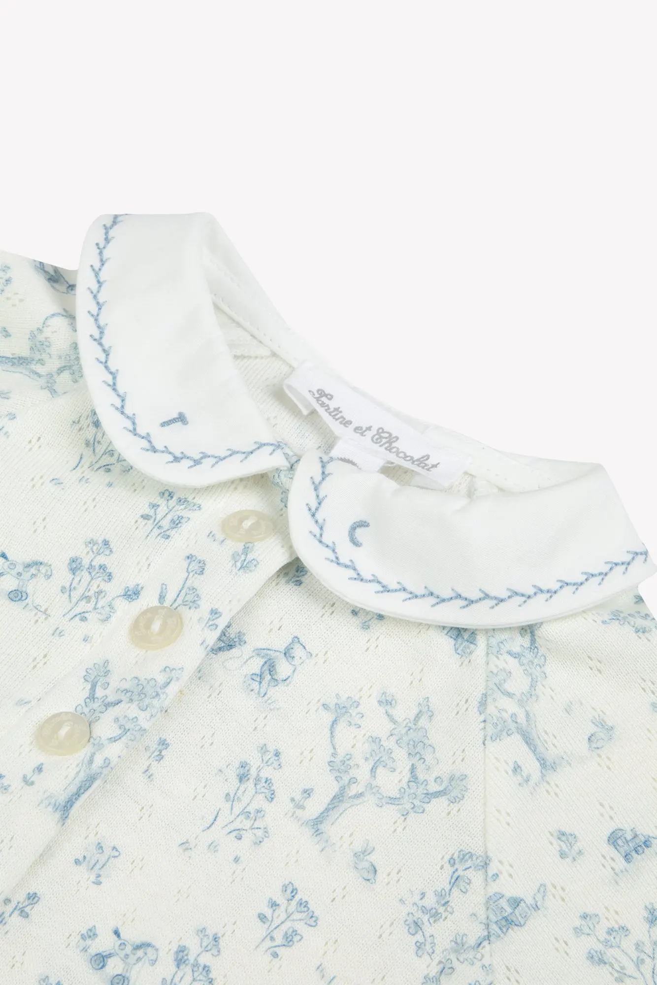 This Pajamas Print Blue fantastic garden with Peter pan collar is perfect for those balmy nights Baby. In 100% cotton, it ensures comfort and softness while carrying Baby in a universe of enchanted dreams. Ideal for moments of tenderness, it goes wonderfully with a blanket in Knitwear for a peaceful night.