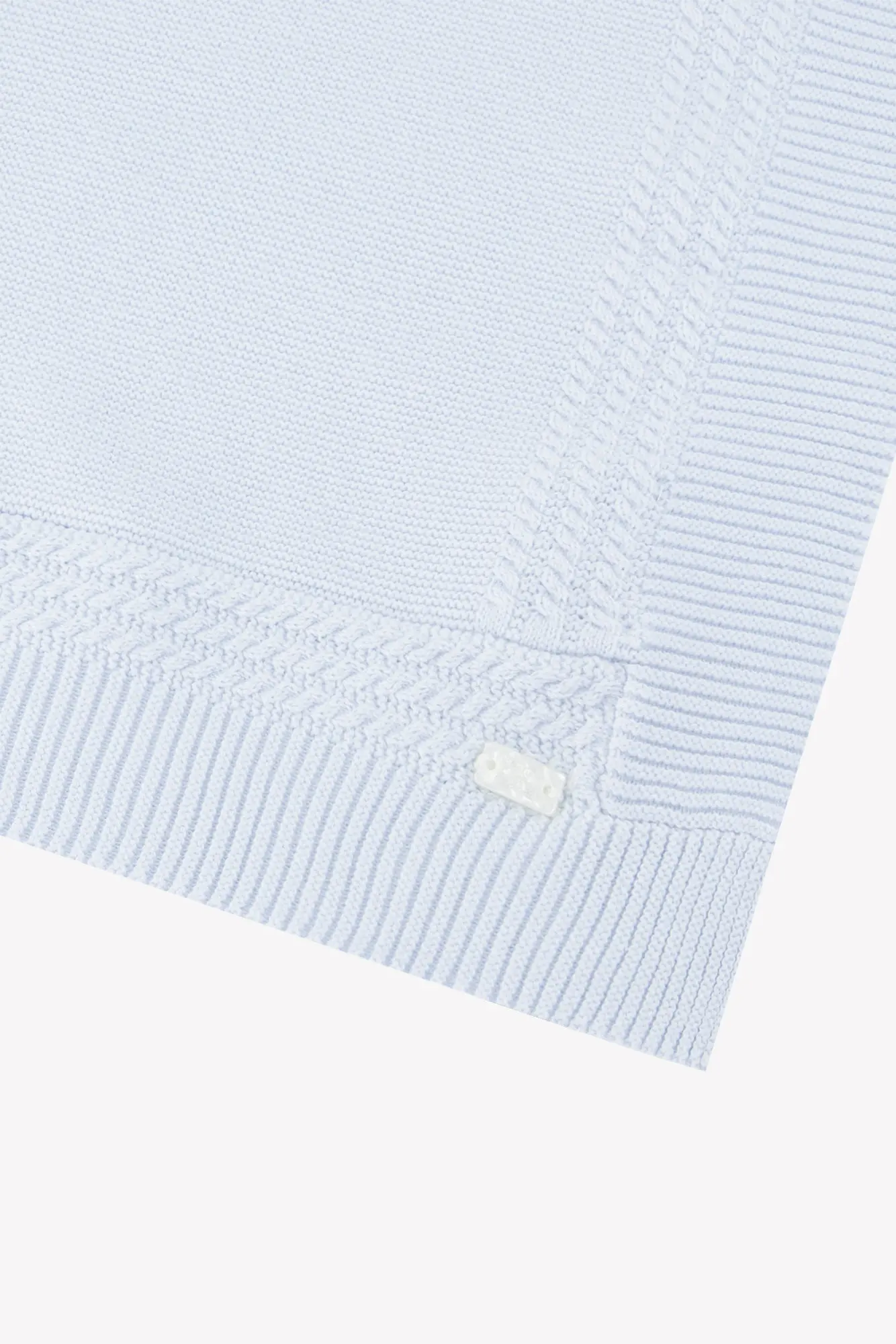 This Blanket Blue for newborns is a cocoon of softness with its ribbed edging details. Ideal for wrapping Baby warmth and tenderness from the first days, it is designed in 100% cotton to guarantee optimal comfort. Perfect for the first boy's trousseau, this Blanket will add a touch of timeless charm to theDress of your little treasure.