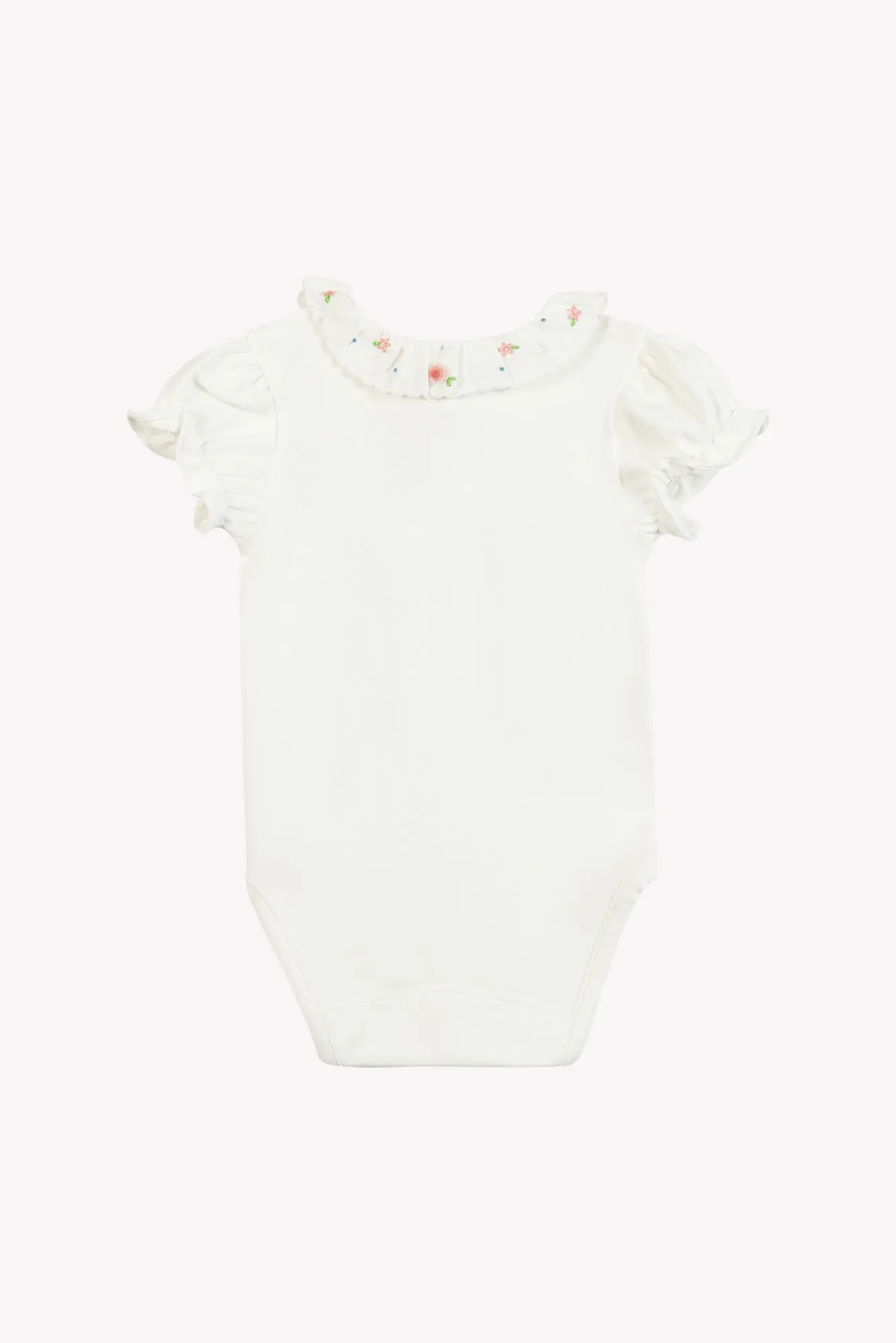 This body short sleeves for girl is a real jewel for the trousseau of Newborn. In 100% cotton, it offers softness and comfort to your little princess. Sound Ruffled collar decorated with delicate flower embroidery, as well as its Puffy sleeves, add a touch of elegance. Perfect to wear alone or with a little one Legging for an adorable look.