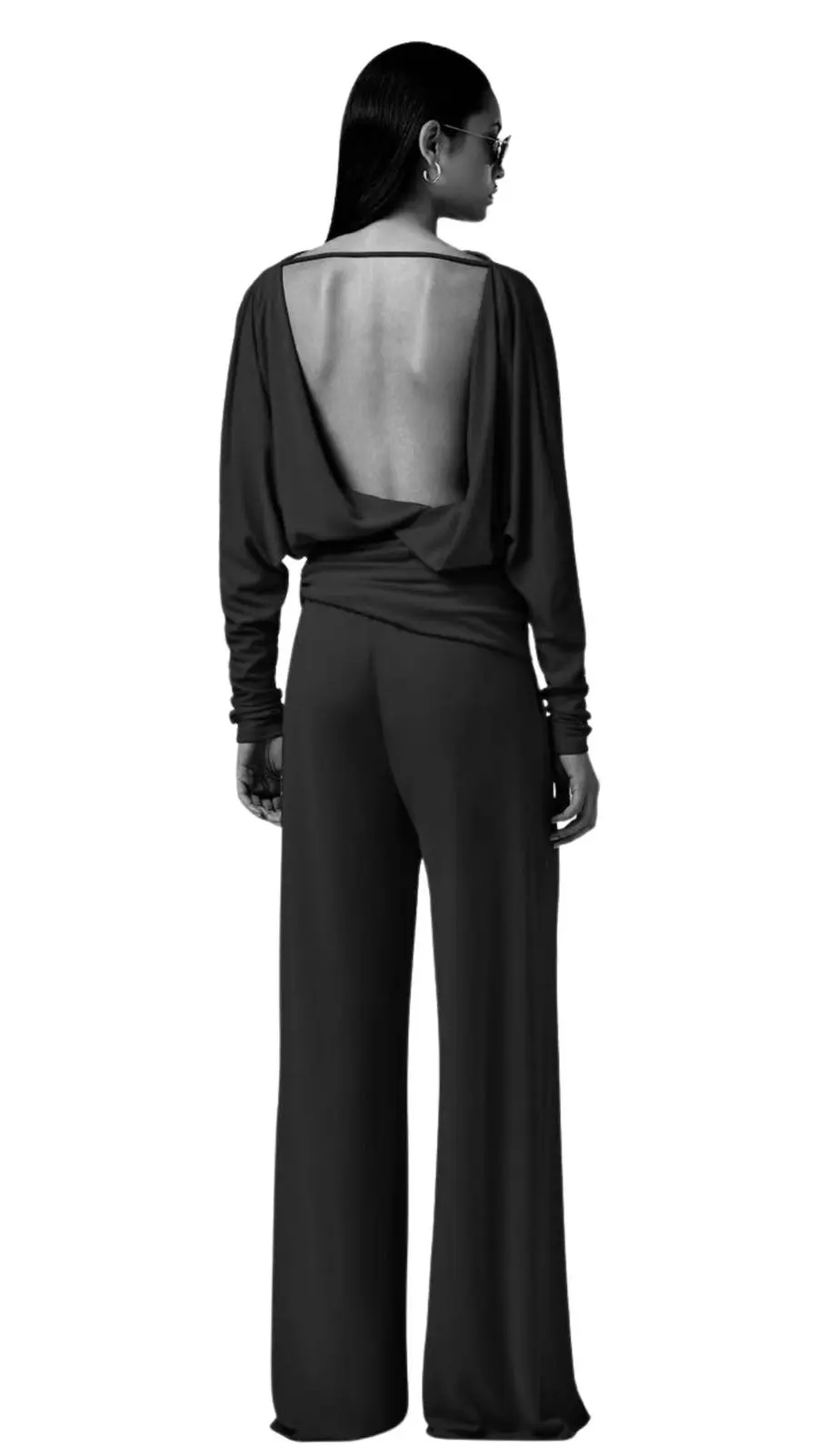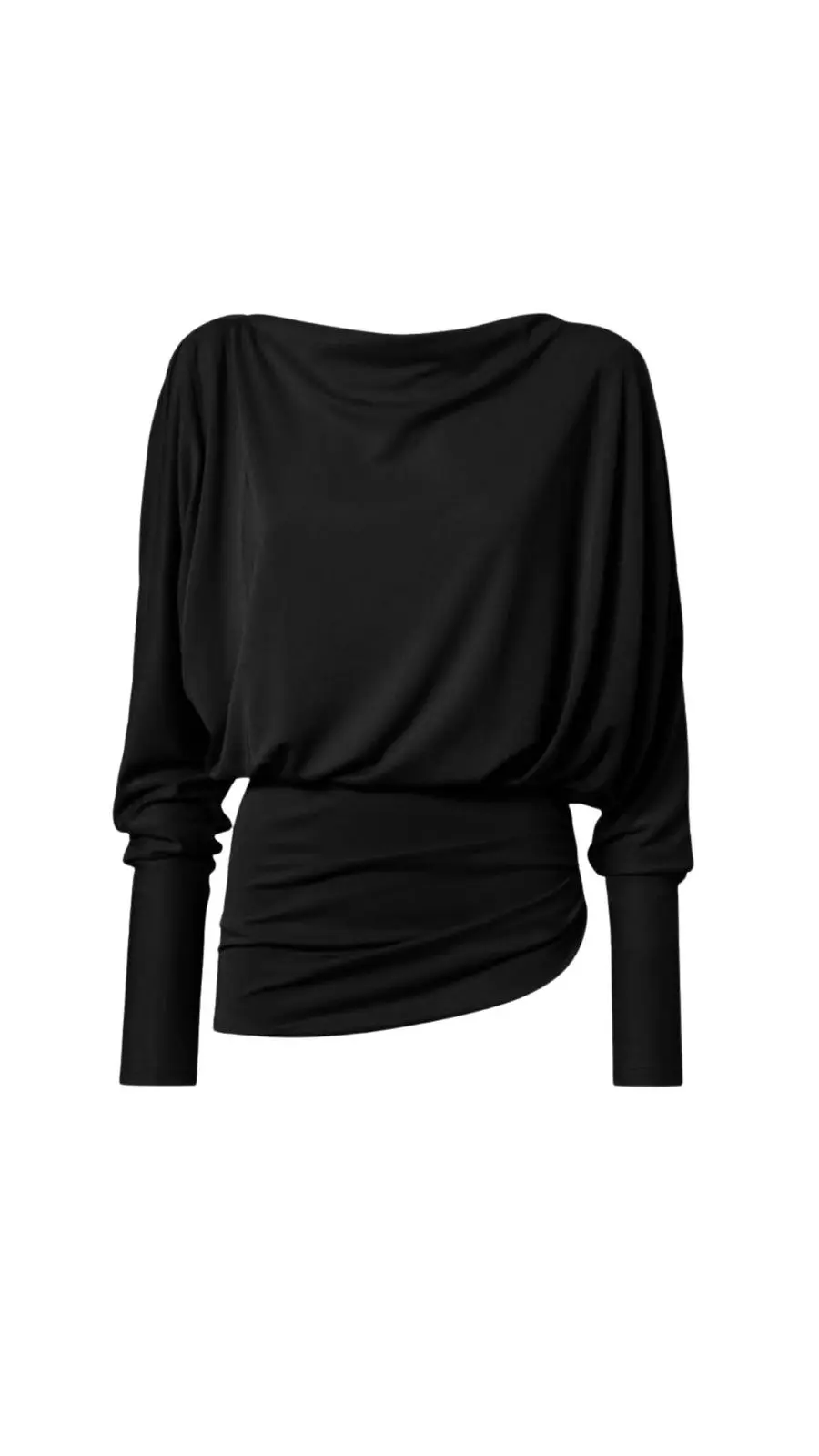The Wisteria T-shirt is made from scarlet interlock jersey. Designed with soft, flowing lines to create a loose-fitting effect, this women’s top has a high boat neckline that extends into long sleeves. Contrasting with the bodice, this top is fitted around the waist and reveals an open back with a single connecting strap across the back of the neck.