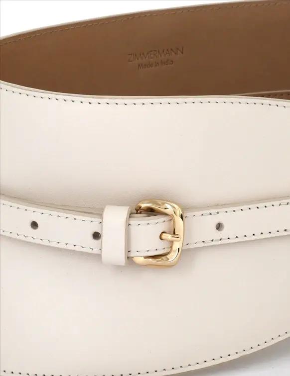 The Malley Corset 100 in Ivory from our Cruise 2026 Collection, Twisted Romance. A leather belt designed to sculpt the waist, featuring a double gold-tone buckle, asymmetric silhouette, and smooth finish. Full-grain leather Cinched corset-style belt Double buckle with gold hardware Asymmetric design